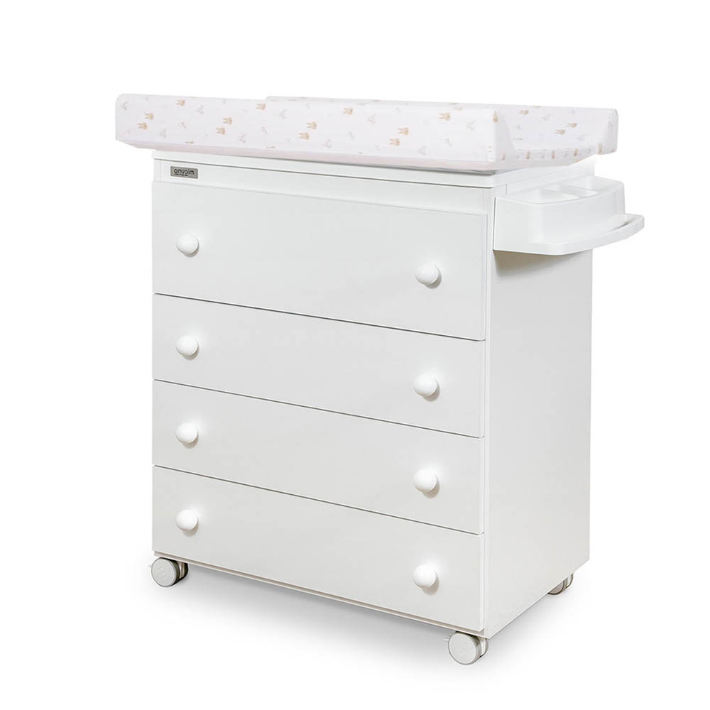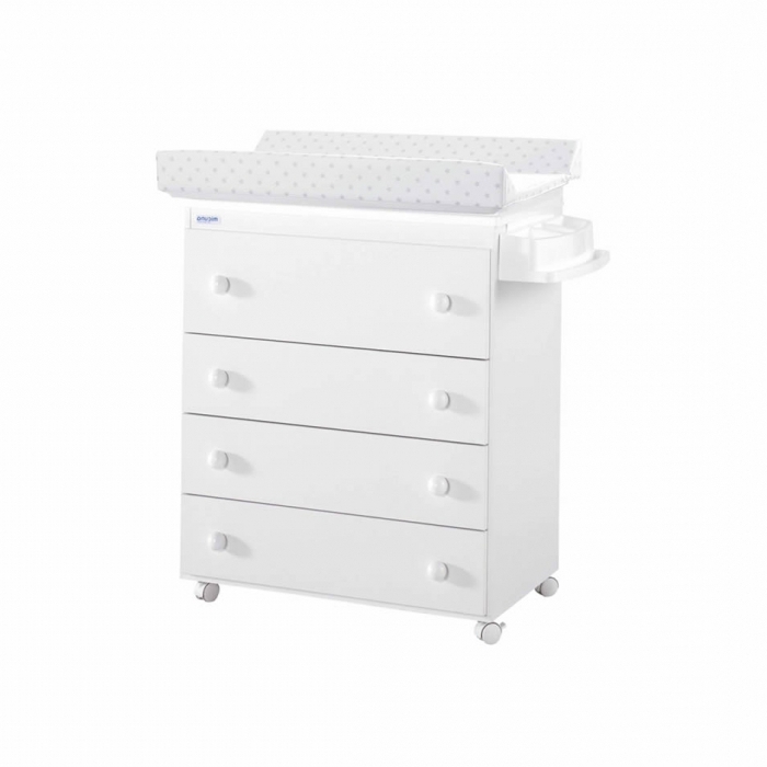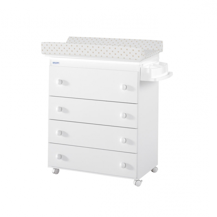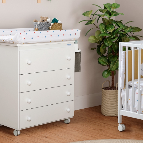 Приятные особенности пеленального комода с ванночкой Micuna:красивый и практичный пеленальный комод заменяет целый набор разнообразной мебели. Всё в нём создано для Вашего комфорта: мягкий пеленальный матрасик, под рукой – полочка для важных мелочей, вместительные ящики легко двигаются на металлических направляющих. Если откинуть крышку, под ней откроется анатомическая ванночка для купания. Самоцентрирующиеся колёсики позволяют легко передвинуть комод, не поцарапав паркет.