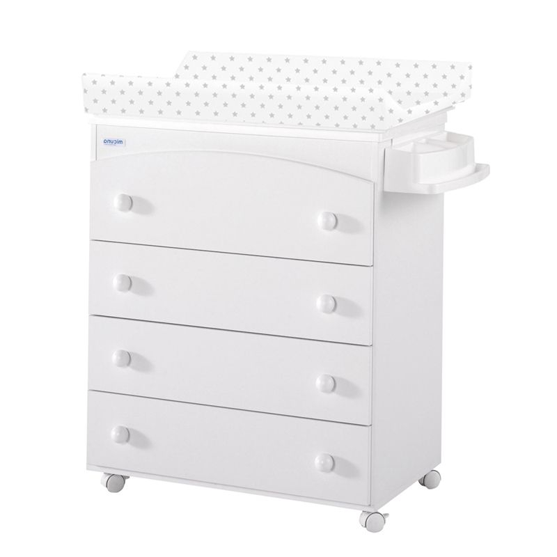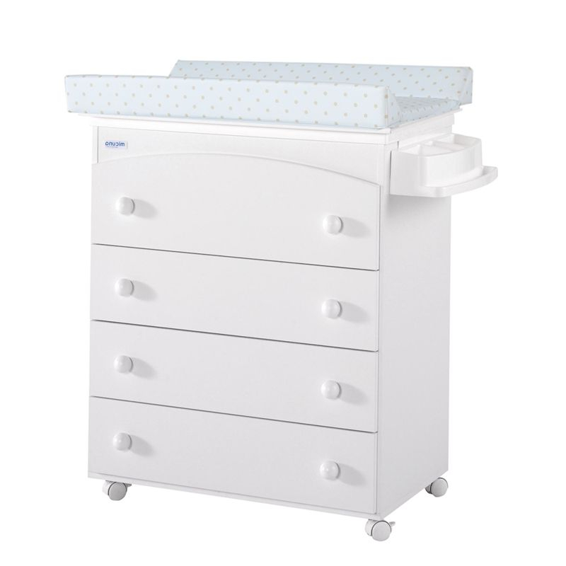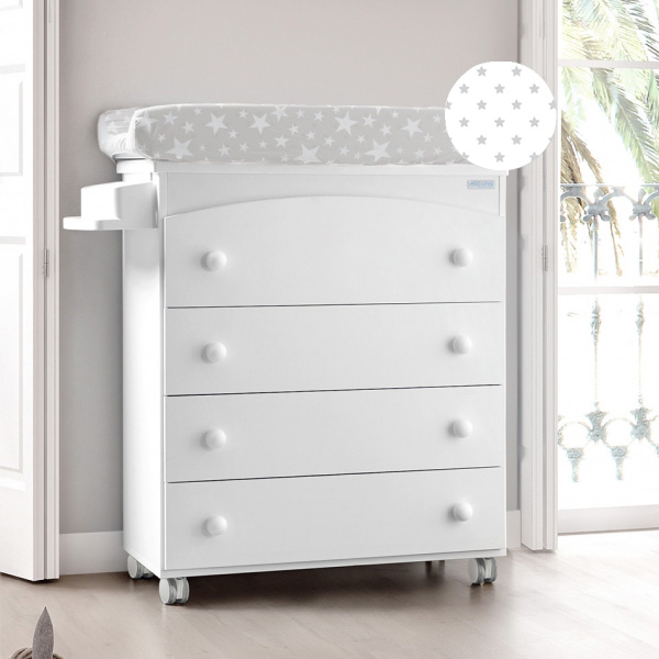 Приятные особенности пеленального комода с ванночкой Micuna:красивый и практичный пеленальный комод заменяет целый набор разнообразной мебели. Всё в нём создано для Вашего комфорта: мягкий пеленальный матрасик, под рукой – полочка для важных мелочей, вместительные ящики легко двигаются на металлических направляющих. Если откинуть крышку, под ней откроется анатомическая ванночка для купания. Самоцентрирующиеся колёсики позволяют легко передвинуть комод, не поцарапав паркет.