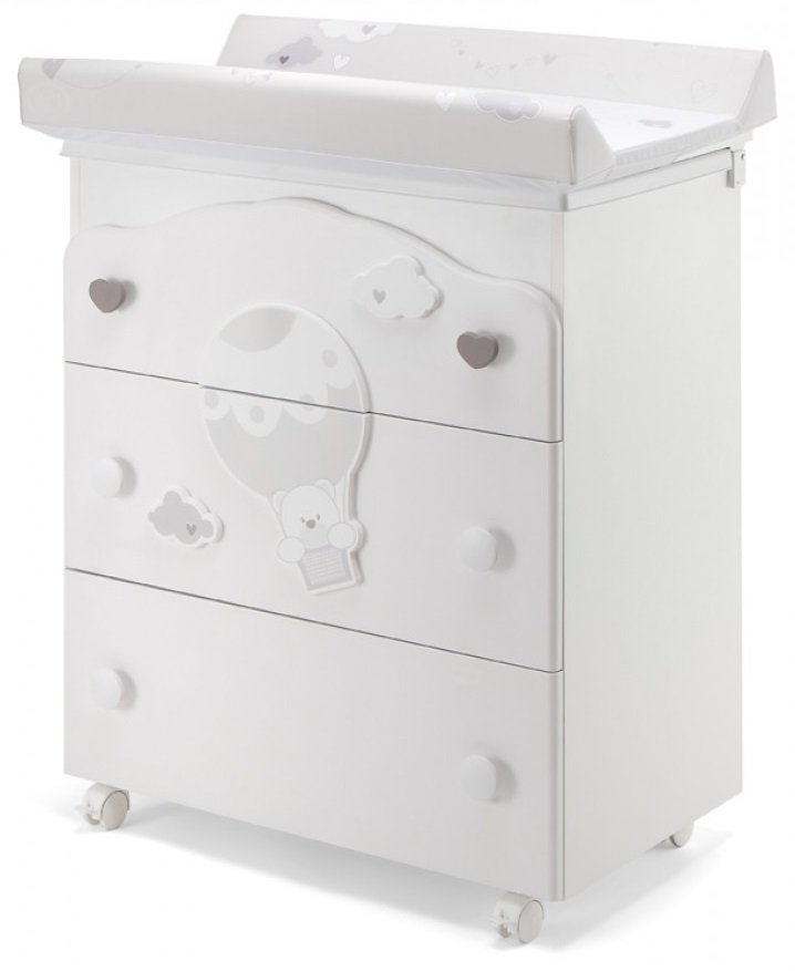 Пеленальный комод Pali Bonnie (Бонни)универсальный, функциональный, стильный, красивый. Выполнен в необычном цветовом решении. Украшен яркими, детскими рисунками. Принадлежит коллекции Pali Bonnie (Бонни).Установлен на четырех колесах с блокирующим тормозом. В комплекте ванночка, которая устанавливается в углубление под верхней крышкой комода и пеленальный матрасик, который фиксируется на комоде. В дальнейшем они убираются и пеленальный комодик превращается в обычный комод. Изготовлен из ламинированых,водостойких панелей, которые по эксплуатационным характеристикам превосходят натуральное дерево. Это экологически чистый материал, не содержащий формальдегидов. Качественная итальянская фурнитура позволяет легко открывать и закрывать ящики и поднимать верхнюю крышку комода.