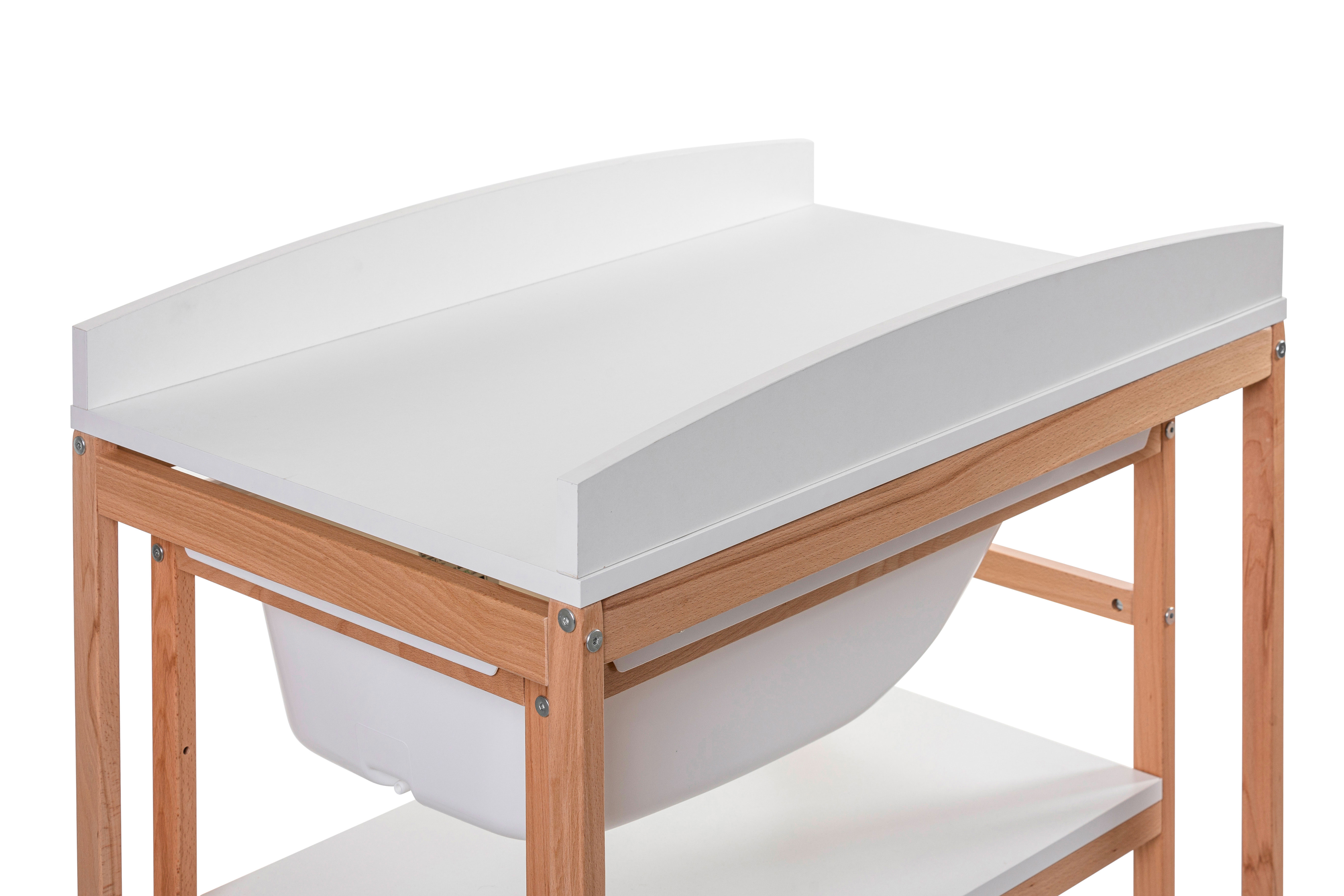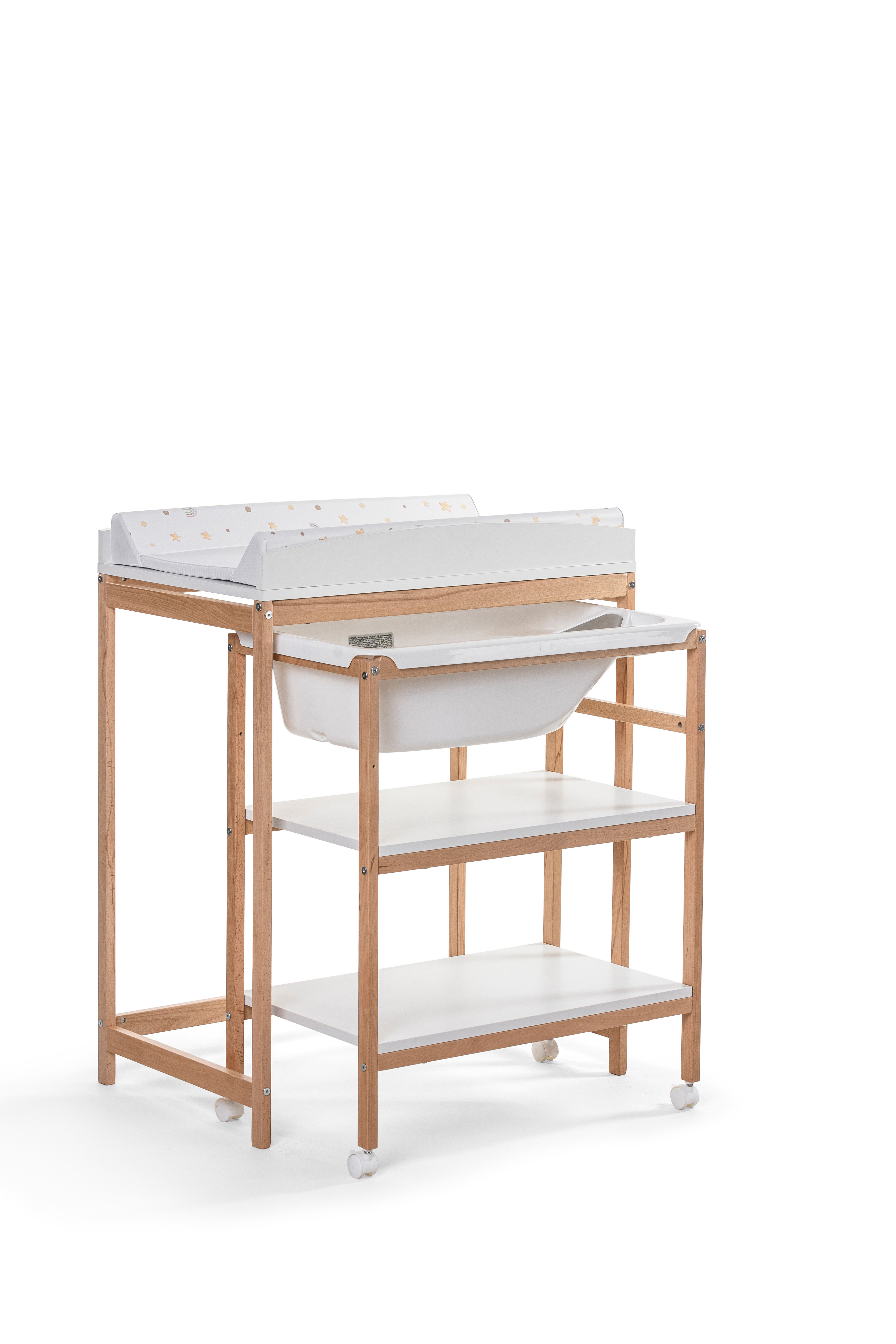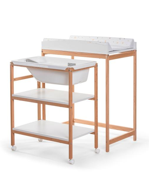 Приятные особенности: Пеленальный столик OkBaby Woody объединяет в себе функциональность и стиль. Верхняя часть предназначена для безопасного и удобного пеленания: мягкий матрас с высокими бортиками обеспечивает комфорт ребёнка и спокойствие родителей. Нижняя часть представляет собой компактную ванночку с анатомической формой, встроенным подголовником и системой для лёгкого слива воды. Две вместительные полки позволяют держать под рукой всё необходимое — от подгузников до полотенец. Конструкция выполнена из натурального дерева и высококачественного пластика, устойчива и надёжна. Четыре колеса делают столик подвижным — вы легко переместите его в нужное место, не беспокоя малыша.