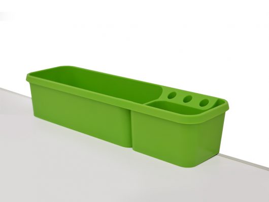 Приятные особенности: Особенности: пенал разделен на три части: три холдера для карандашей, карман для стикеров, а также большой универсальный карман для хранения различных канцтоваров. Навесной пенал изготовлен из прочного и безопасного ABS-пластика. Главная особенность конструкции - фиксатор, благодаря которому пенал можно перемещать по периметру столешницы и при этом он не будет мешать. Ширина держателя 25 ммРазмеры: