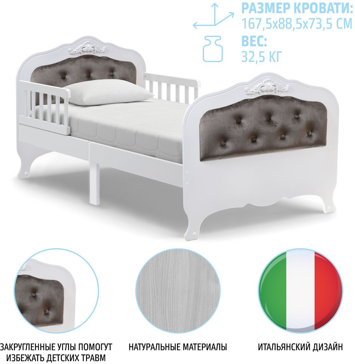 Приятные особенности :Nuovita Fulgore Lux lungo - это по-настоящему королевская кровать, выполненная в классическом итальянском стиле. Плавные изогнутые линии, мягкое бархатное изголовье, цветовая гамма благородных оттенков и высококачественные материалы – все это делает ее истинным произведением искусства и создает атмосферу элитарности и изысканности.Кровать предназначена для детей от 3 лет. Просторное спальное место 160х80 см обеспечит ребенку спокойный и крепкий сон, а бортики защитят его от случайного падения. Модель изготовлена из натуральных, сертифицированных материалов, соответствующих европейским стандартам экологичности.Давно известно, что итальянские модельеры и дизайнеры являются общепризнанными законодателями стиля и моды. Еще одним подтверждением этого является созданная ими изящная модель подростковой кровати Nuovita Fulgore Lux lungo, которая несомненно украсит классический интерьер детской комнаты.
