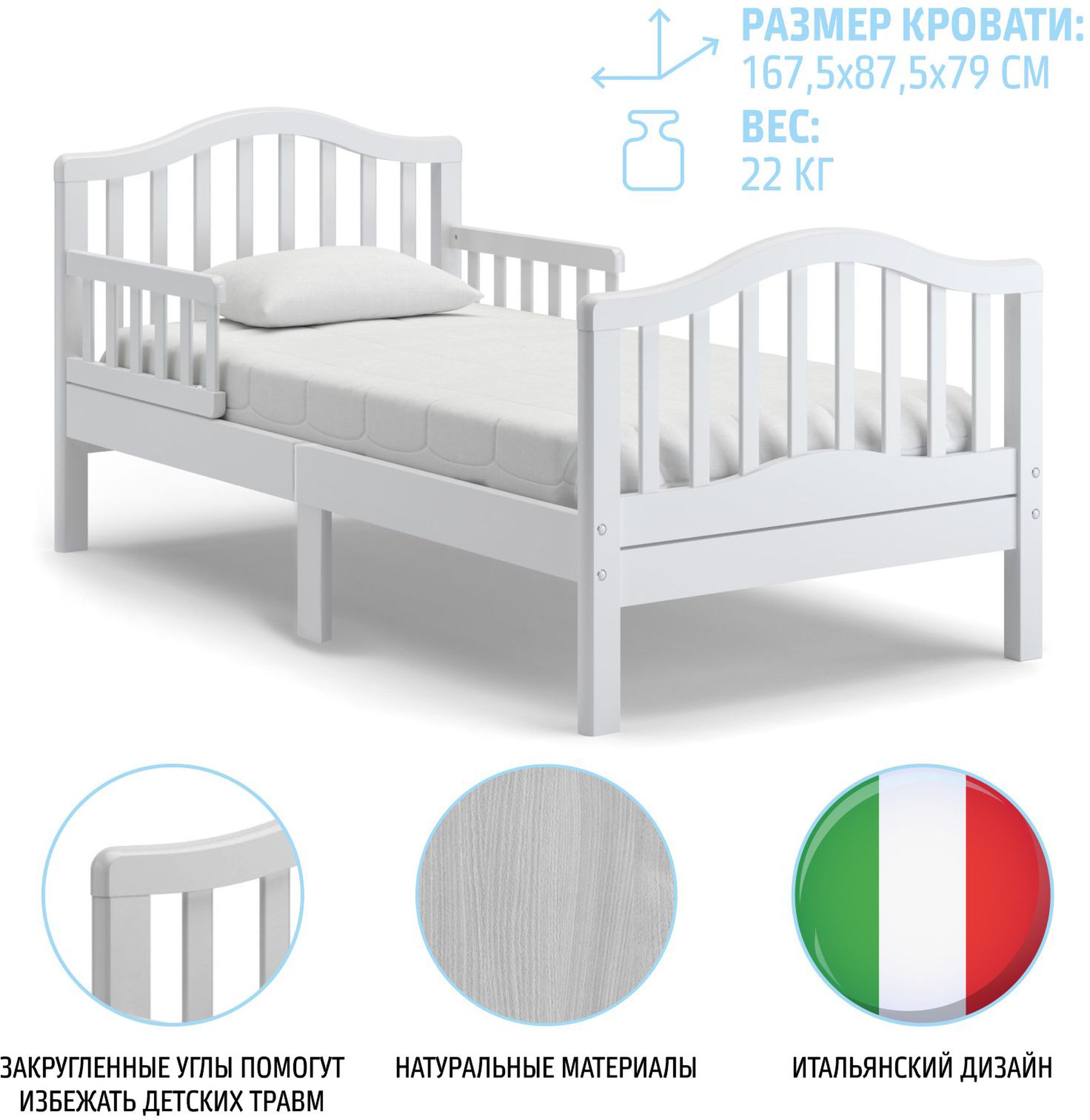 Размер кровати: 167,5х87,5х79 см