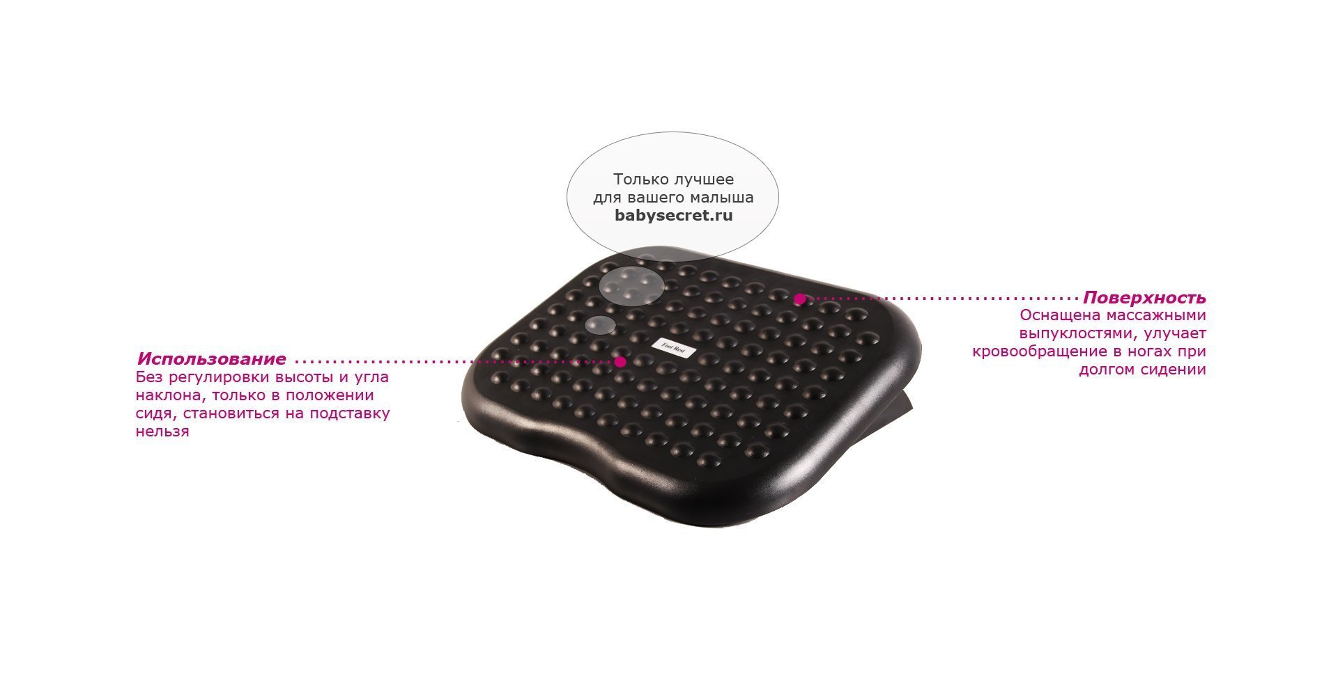 Приятные особенности :подставка под ноги будет полезной для самых юных учеников. Если ваш малыш пока еще невысокого роста, и парта-трансформер, установленная на минимальную высоту, слишком велика для него, поднимите детское кресло чуть выше и поставьте на пол подставку. Проследите, чтобы ступни не свисали, а колени были согнуты под прямым углом. При правильном положении тела, мышцы не будут уставать, и у ребенка будет формироваться здоровая осанка.Внимание становиться на подставку нельзя! Подставка используется только в положении сидя!