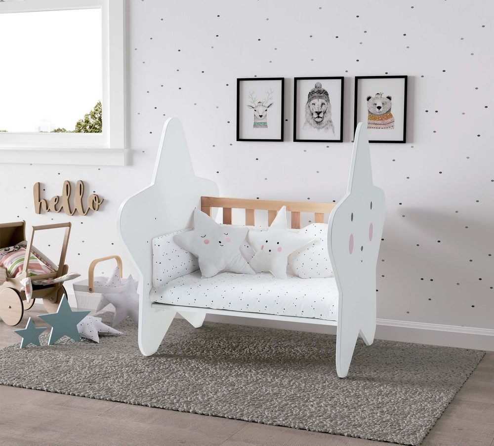 Приятные особенности постельного белья Micuna:Ещё никогда сочетание чёрного и белого не было таким нежным и удачным для детской коллекции. Линия текстиля для детской колыбели Micuna Claire выполнена в неожиданном для испанских дизайнеров скандинавском стиле: эффектный контраст чёрного и белого цветов прекрасно гармонирует с неброским орнаментом и трогательной мордочкой на спинке колыбели, превращая спальное место малыша в уголок нежности и уюта.