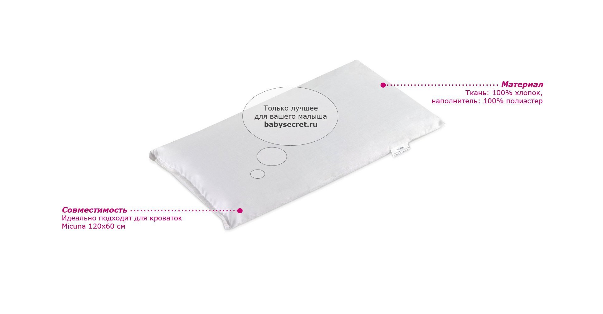 Приятные особенности Micuna для кровати 120х60 CH-570:подушка является дополнительным функциональным элементом к детской кроватке Micuna. Подушка подарит непревзойденные минуты безоблачных и удивительных снов. Коллекция текстиля для детской комнаты от испанской компании Micuna создана из натурального хлопка самой тонкой выделки. Нежная, гипоаллергенная ткань благоприятна для кожи малышей. Она легко стирается и быстро сохнет. Мягкий наполнитель – холлофайбер – состоит из пустотелых полиэстеровых волокон, скрученных в форме пружин. Обеспечивает лучшую, чем синтепон, теплоизоляцию и меньше слёживается. Текстиль Micuna – гарантия настоящего качества.