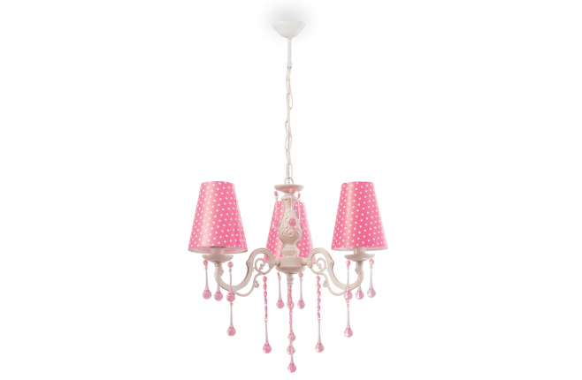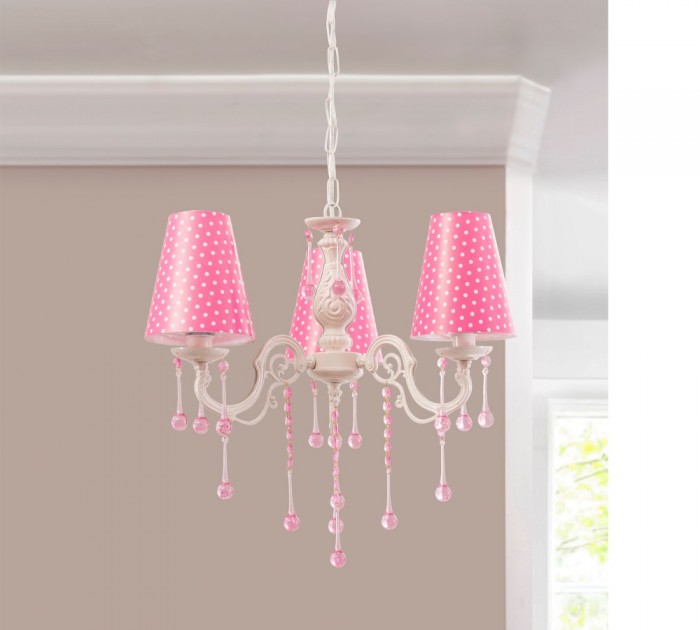 Приятные особенности:Люстра Dotty от компании Cilek одинаково хорошо подойдет для обустройства помещения девочек любого возраста. Основа светильника имеет нейтральный темный цвет, который не привлекает внимания. Зато три красивых ярко-розовых плафона в белый горошек, украшенные такими же яркими подвесками, надолго удерживают и завораживают взгляд. Они способны создать для ребенка сказочную обстановку, в которой будет приятно играть, мечтать, учиться и просто отдыхать.