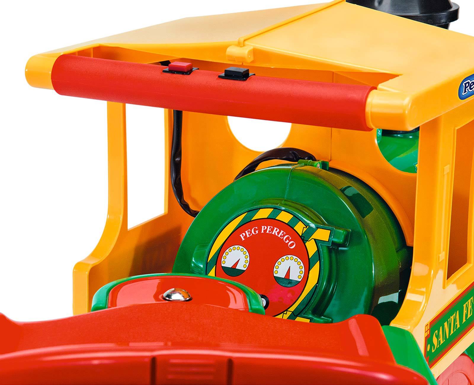 Приятные особенности :Великолепный «Santa Fe Train» – это мечта любого ребенка. При езде паровоз издает реалистичные звуки – гудит и шумит как настоящий поезд, что несомненно понравится малышу. Паровозик ездит по специальным рельсам, которые собираются в кольцо. Ваш малыш сам руководит движением паровоза – держит рукой кнопку движения.