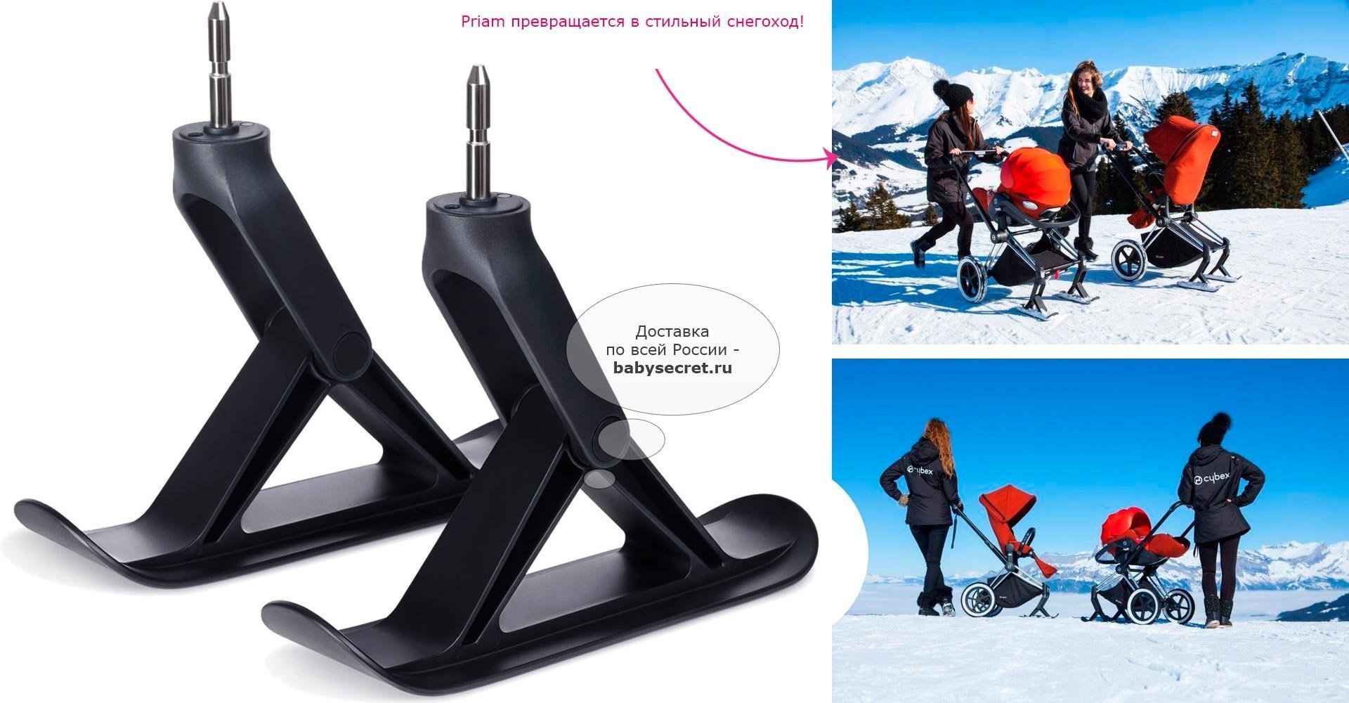 Основные характеристики: легко крепятся к коляске вместо передних колес заменив передние колеса на полозья, Priam превращается в стильный снегоход.