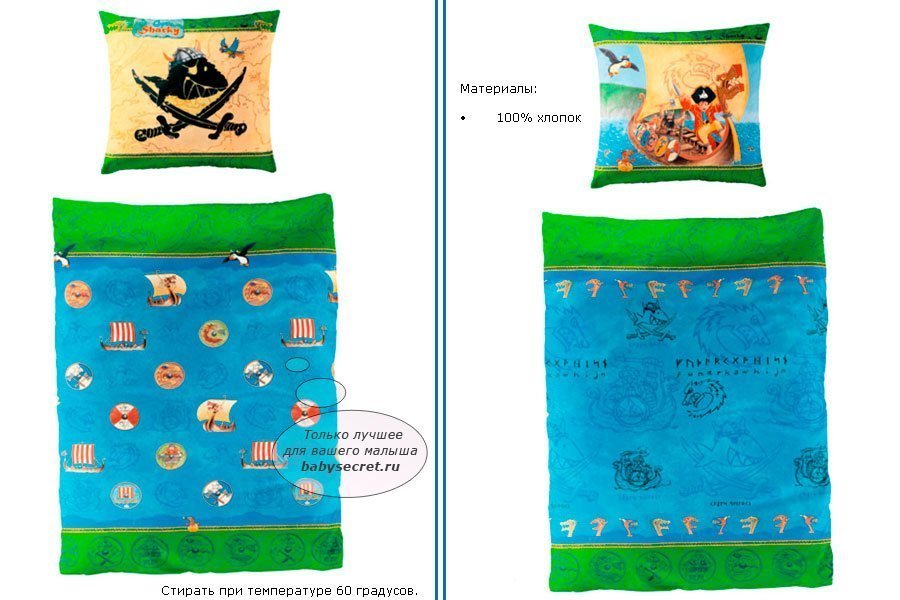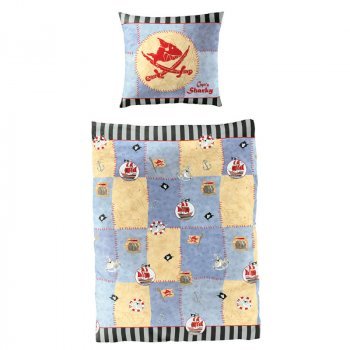 Приятные особенности постельного белья Spiegelburg Capt'n Sharky 11188: на палубу, и полный вперед! Великолепное постельное белье из коллекции Capt'n Sharky, посвященное любимому детскому герою – пирату, авантюристу и искателю сокровищ. Это постельное белье станет отличным украшением комнаты Вашего ребенка и создаст в детской удивительную атмосферу дальних странствий и захватывающих приключений. Яркий рисунок, натуральный хлопок, прекрасно сочетается с предметами мебели коллекции.