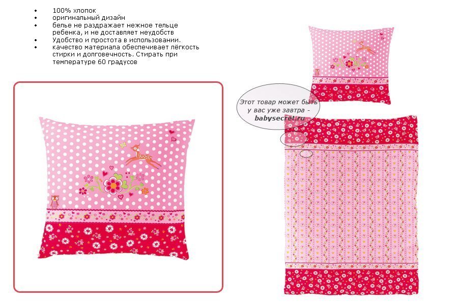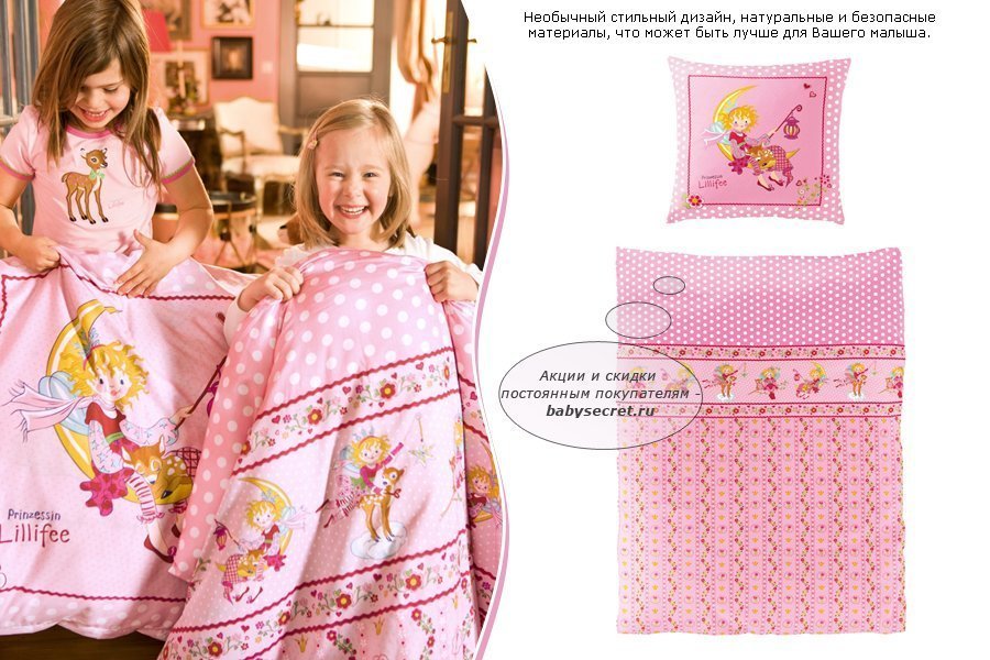 Приятные особенности постельного белья Spiegelburg Prinzessin Lillifee:необычный стильный дизайн, натуральные и безопасные материалы, что может быть лучше для Вашего малыша. Белье для девочек в розовых тонах приятно удивит вас необычным дизайном. Постельное белье создаст уют Вашей малышке и подарит ей спокойные и приятные сны. Сделайте прекрасный подарок себе или своим близким.
