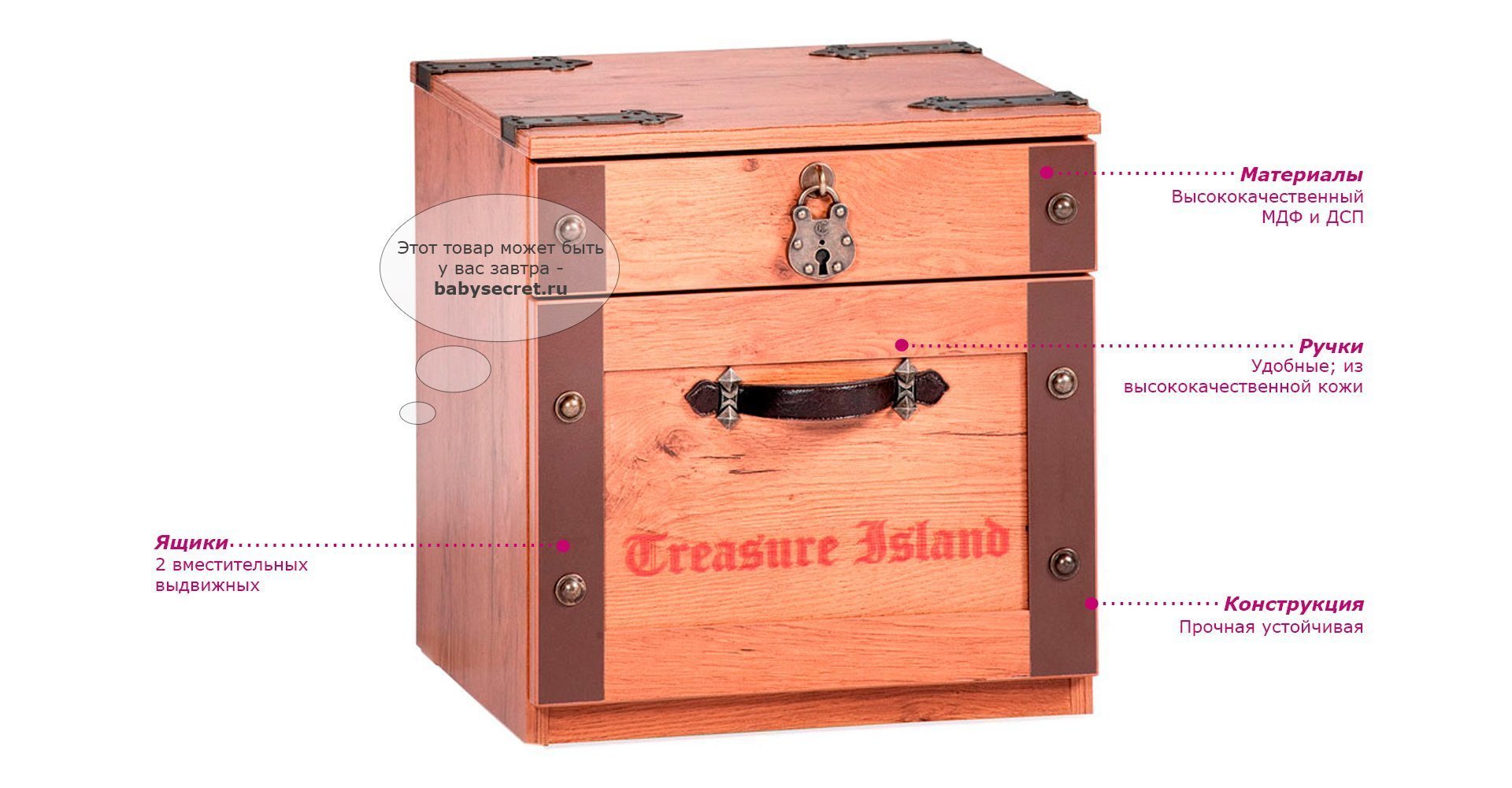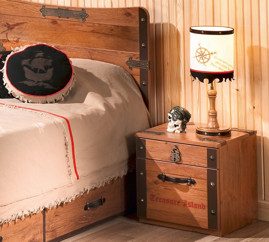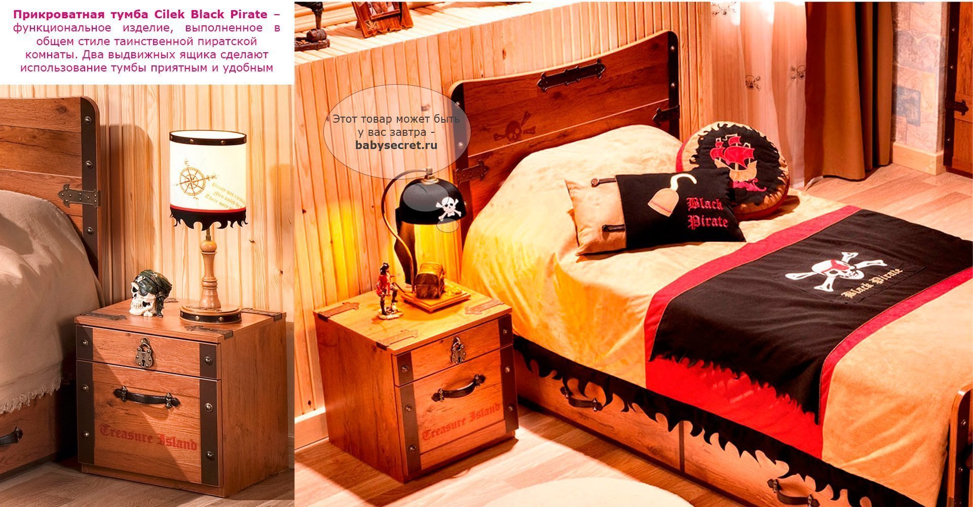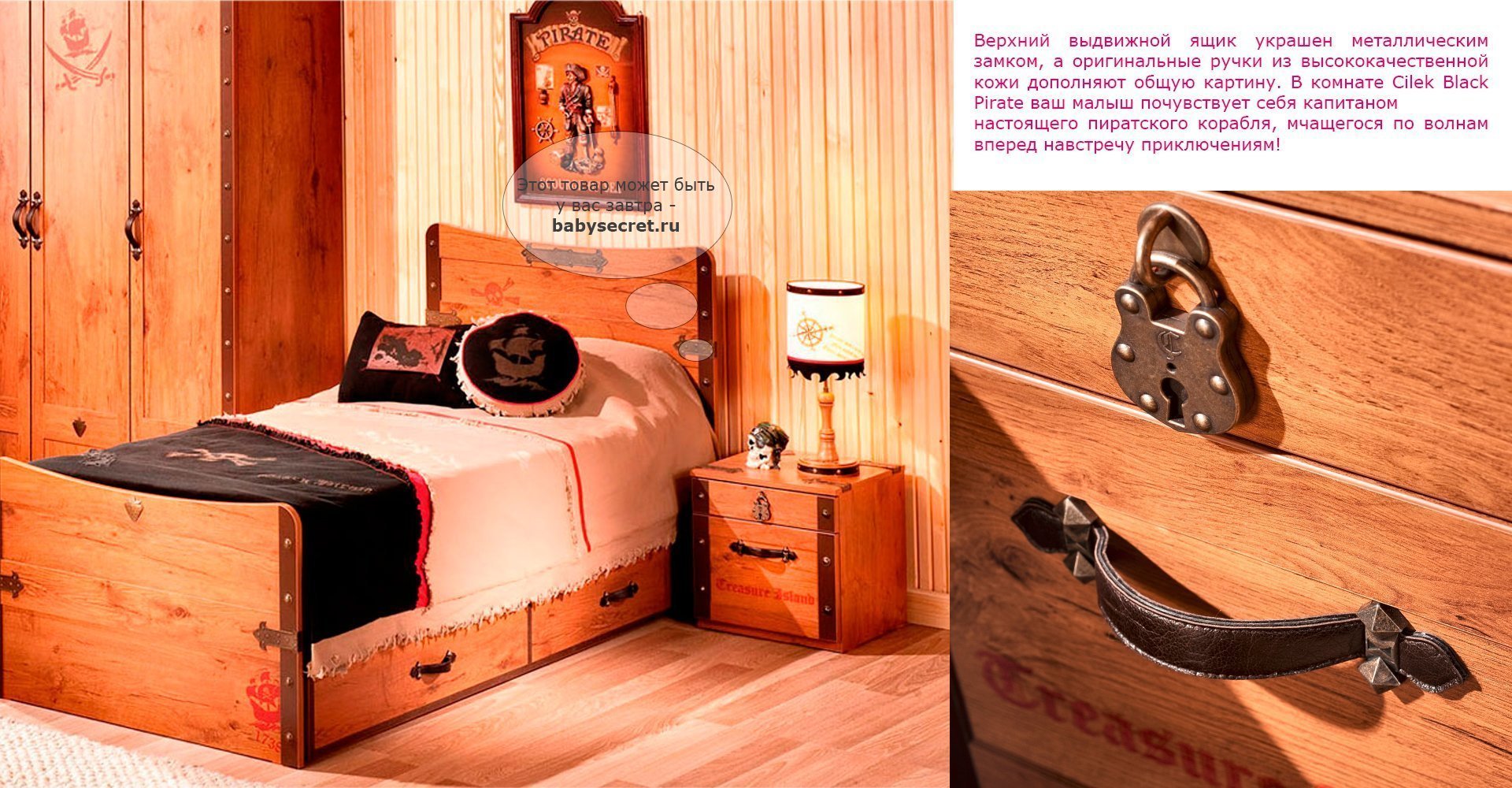 Производитель: Cilek (Турция) Материалы: Основные характеристики: Приятные особенности прикроватной тумбочки Cilek Black Pirate: В этой комнате каждому предмету мебели отведено свое место в большом путешествии. Это относится и к прикроватной тумбочке, специально разработанной для того, чтобы вы смогли быстро дотянуться до необходимых вещей, не вставая с кровати. Дерево, металлические детали и кожа… эта комбинация вызывает мурашки по телу… В темноте каждое прикосновение к любой части тумбочки уже становится своеобразным приключением. Лопни моя селезенка, если это не комната настоящего пирата! Отличие настоящей комнаты для маленького сорванца состоит в обязательном наличии не просто удобной и качественной мебели, но и полноценного игрового пространства, развивающего воображение ребенка и позволяющего проявить необходимую активность. Общие размеры:внешние (шхгхв) 41.6x44x41.6 см Вес: 16 кг Габариты в упаковке (ШxДxВ): Коробка тумба: 0.084 м3 , 16 кгГарантия: 12 мес.