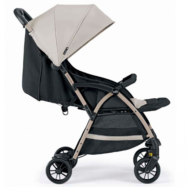 Приятные особенности детской прогулочной коляски Cam: Прогулочная коляска Cam Giramondo - новая модель от известной итальянской компании. Отличается компактностью, малым весом и высокой надежностью. Может использоваться приблизительно с рождения и до 3 лет. Из особенностей стоит отметить большой, продуманный капюшон, который отлично закрывает малыша даже в положении сна. Накидка на ножки, достаточно большая и теплая, поставляется в комплекте, что не так часто встречается в колясках данного типа. Рама изготовлена из алюминия, легкая и прочная. Ход - плавный и комфортный. Передняя пара колес - вращаются на 360 градусов с возможностью блокировки. Задняя пара колес - оснащены ножным стояночным тормозом.