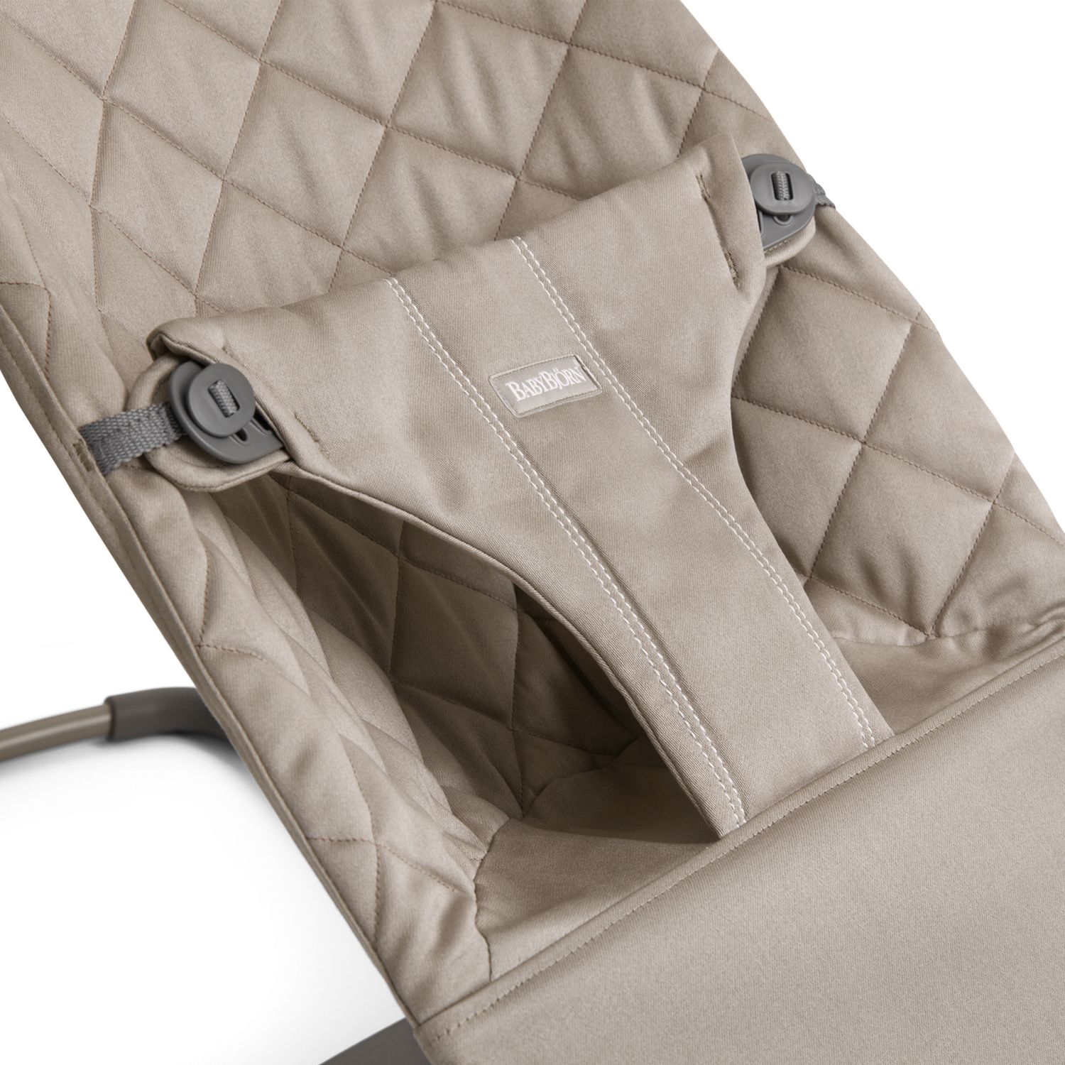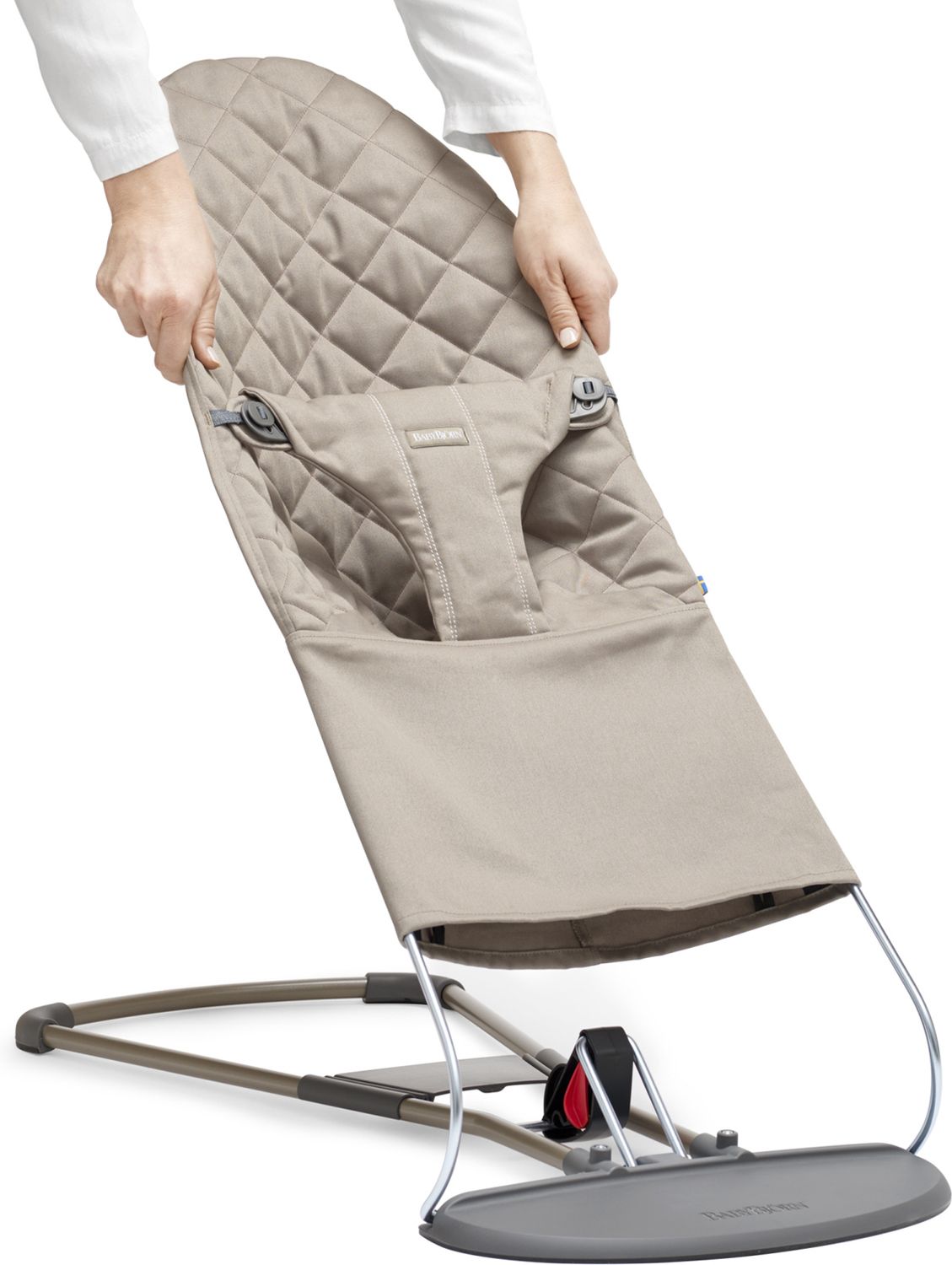 Приятные особенности :Кресла-шезлонги BABYBJORN серии Bliss – это обновленный дизайн классической модели. Данная серия отличается от классики цветом каркаса изделия и дизайном чехла шезлонга. Металлический каркас серого цвета придает изделию более утонченный внешний вид. Однотонные чехлы нежных, теплых оттенков подчеркивают скандинавский стиль. Новые цветовые решения вызывают ассоциации легкости, спокойствия и блаженства. Кресло- шезлонг BABYBJORN Bliss - комфортное место для длительного времяпрепровождения вашего малыша.