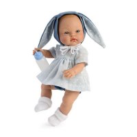 Приятные особенности: Очаровательный малыш Алекс - это классический пупс, ростом 36 см, и весом всего 650 гр., без половых признаков. Выполнен из премиального гипоаллергенного винила, детально проработаны все складочки на руках и ногах, маленькие пальчики с ногтевой пластиной, ножки полусогнуты в коленях, цвет винила схож с натуральным цветом кожи. Тело полностью виниловое, что позволяет купать малыша. Волос нет, прорисованы. Голубые глазки без ресничек, аккуратный маленький носик, приоткрытый ротик и пухлые щечки делают этого малыша просто неотразимым! А рост и вес очень очень удобны для маленьких ручек. Отдельное внимание стоит уделить комплектам. Наряды ASI выше всяких похвал! Выполнены из высококачественных материалов от ведущих испанских кукольных дизайнеров. Одет Алекс в красивый дизайнерский комплект: кофточка в нежно-голубых тонах, шортики, шапочка с ушками как у зайчика и носочки. В комплекте бутылочка для кормления малыша. Упаковка- фирменная подарочная коробка ASI.