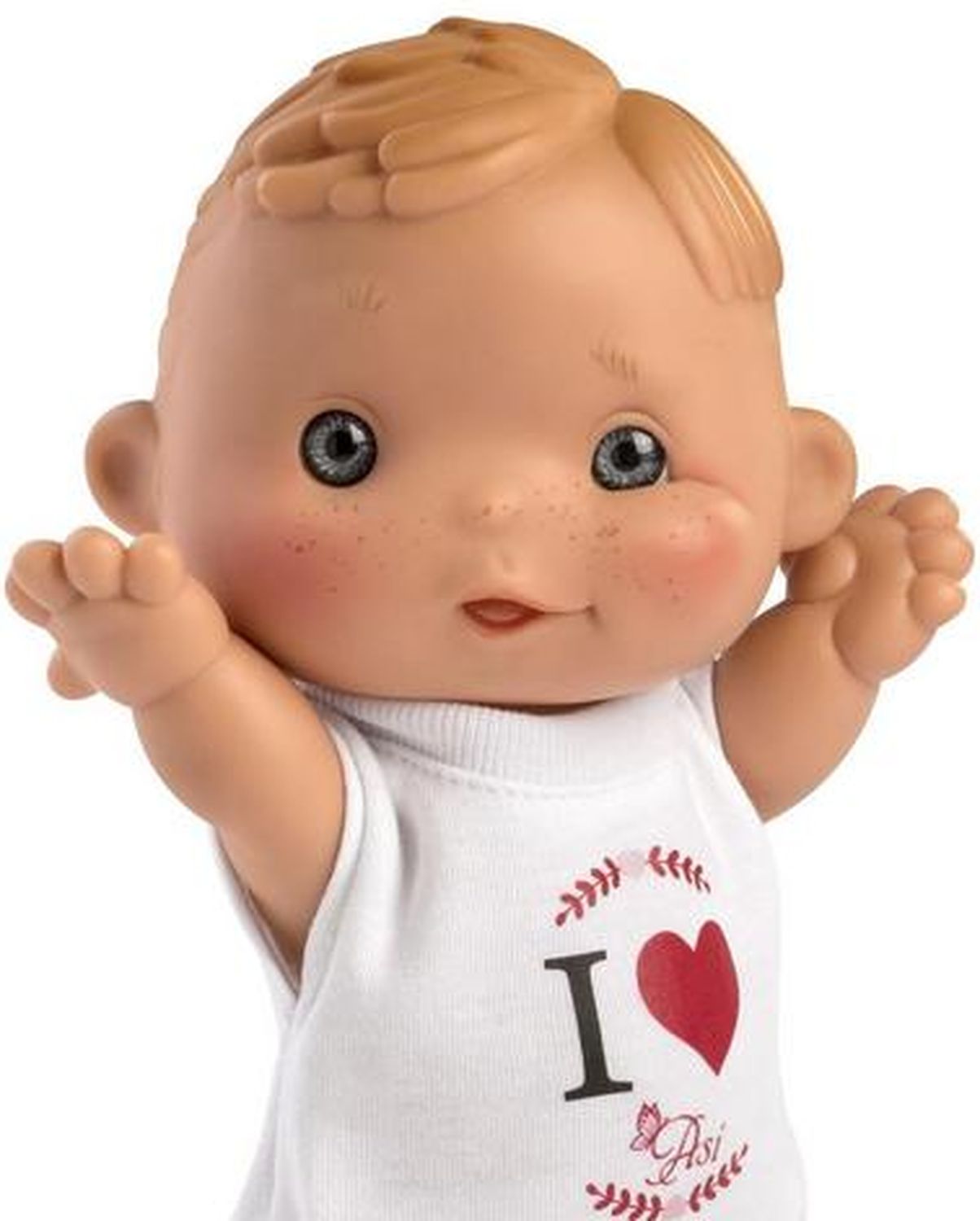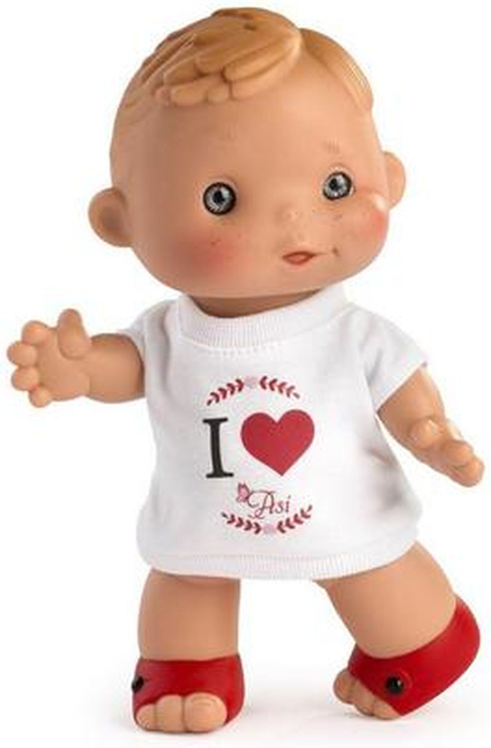 Приятные особенности :Пупсик-мальчик Дани в белой футболке с надписью "I Love ASI". Рост малыша 23 см, выполнен полностью из высококачественного винила, без запаха. Очень милый и забавный малыш, с веснушками и голубыми глазками, не оставит равнодушным никого! Детально проработаны складочки, а еще у него милый пупочек в виде сердечка. Послужит прекрасным подарком для девочек от 3 лет. Упакован в красивую эко коробочку.