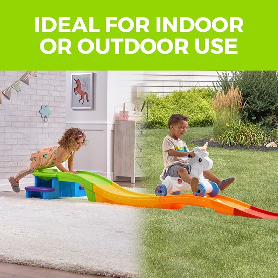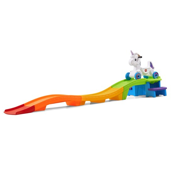 Приятные особенности : Возраст 2-5 лет; Две боковые лесенки из двух ступенек, в верхней точке выемки, для фиксации колес, У единорожка высокая спинка и есть поручни для рук и подставка для ног. Требуется участие родителей при сборке.