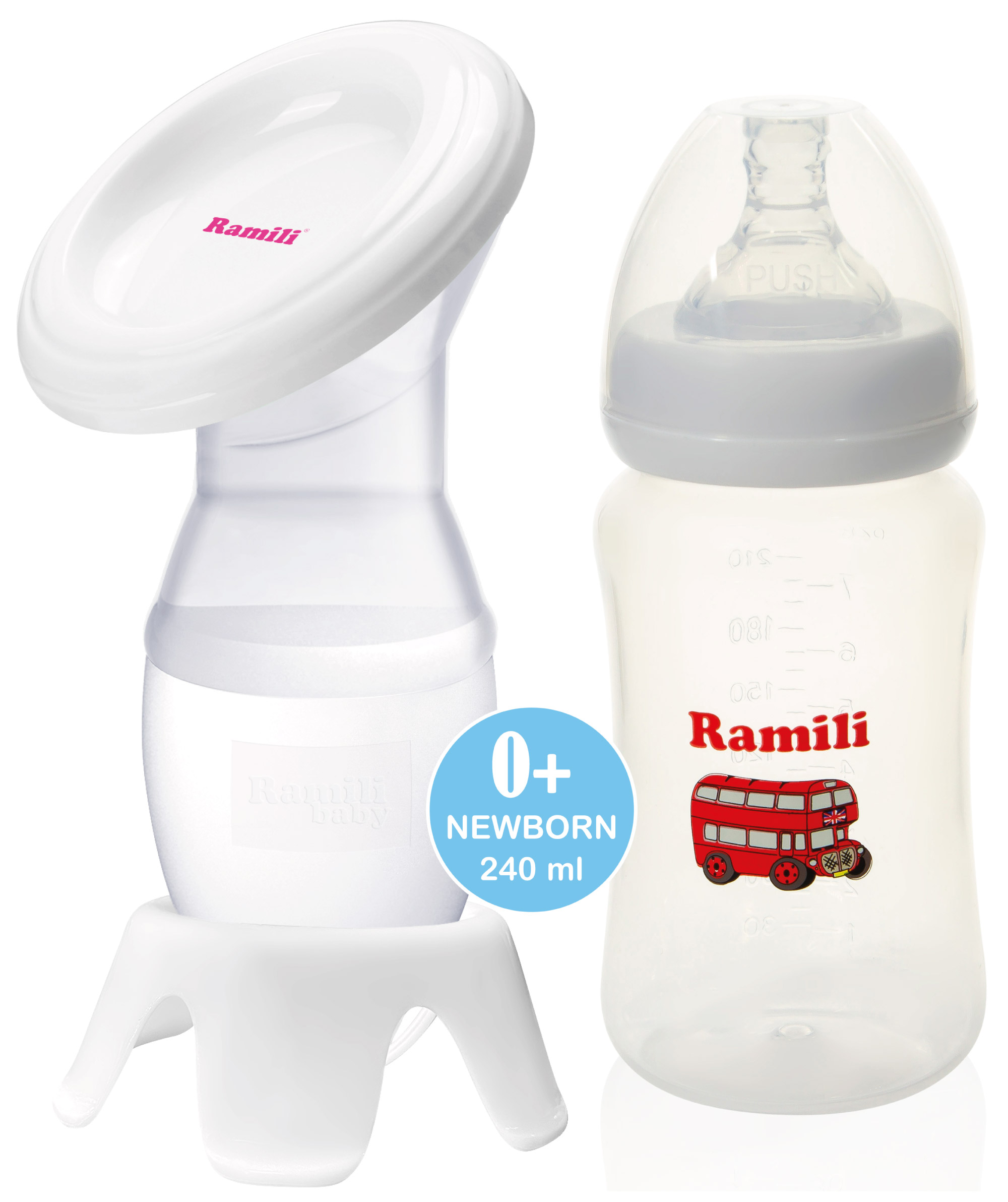 Приятные особенности: Молокоотсос с противоколиковой бутылочкой для кормления Ramili Baby 240ML. Особая эргономичная конструкция ручного молокоотсоса позволяет маме принять комфортное положение, что особенно важно для того, чтобы добиться наилучшего результата при сцеживании грудного молока. Прилегающая к телу часть молокоотсоса изготовлена из специального мягкого силикона, обеспечивая дополнительный комфорт, стимулирует около сосковую область и грудь, в целом помогает добиться максимальный отток грудного молока. Ручной молокоотсос Ramili® MC200 очень лёгкий и компактный, состоит всего из 2-х частей, за ним легко ухаживать, удобно взять с собой на работу или в поездку. Он работает по принципу помпы. Благодаря небольшому размеру и гибкости может уместиться даже в дамской сумочке, а в процессе сцеживания в поездках будет не так заметен. Держите этот молокоотсос всегда при себе пока вы кормите ребенка, он особенно пригодится и выручит вас в ситуациях, когда потребуется экстренное сцеживание. Благодаря молокоотсосу Ramili® MC200 вы сделаете это комфортно и малозаметно для окружающих, где бы вы ни находились.