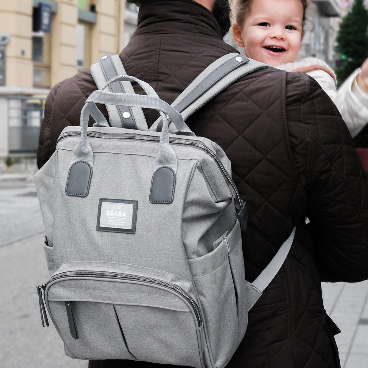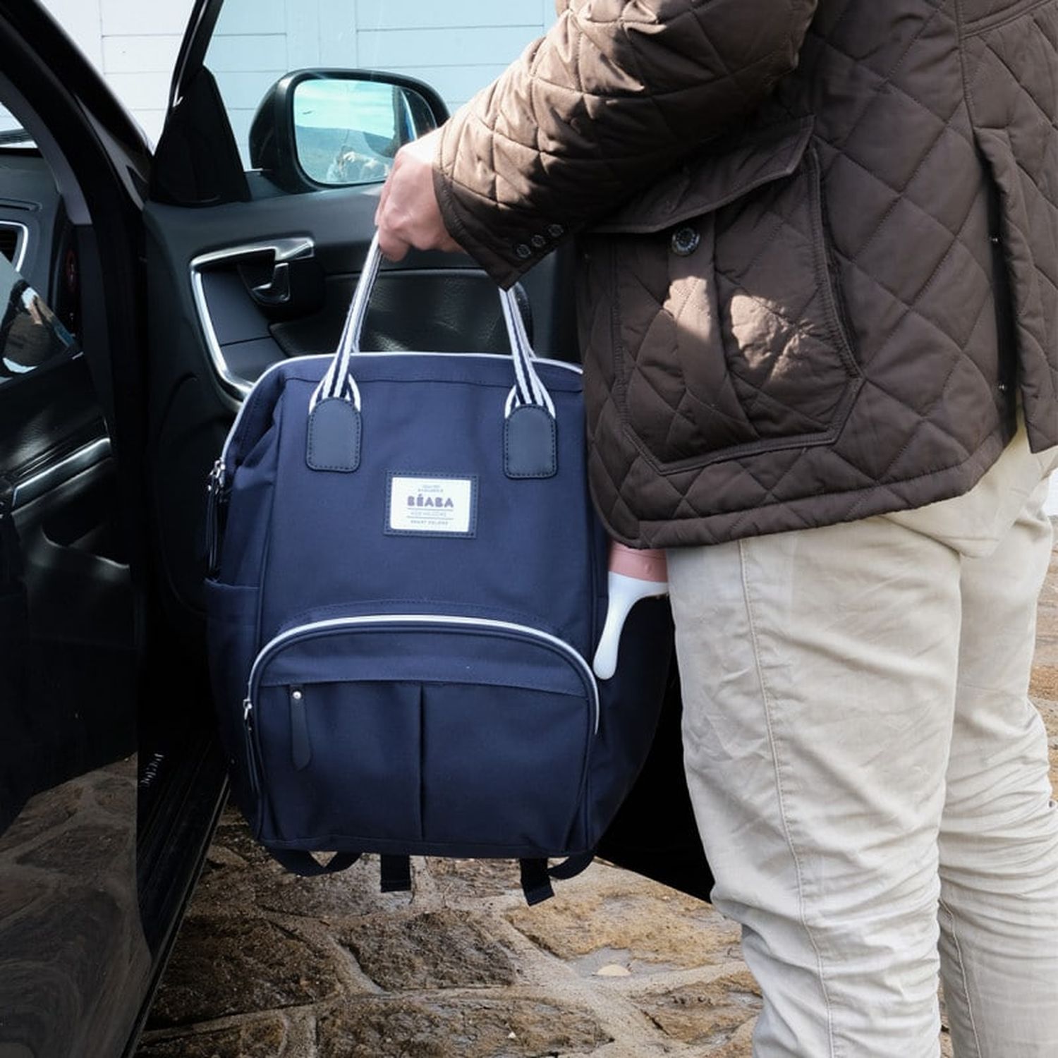 Приятные особенности:Beaba Рюкзак-сумка Sac Wellington – ультра-практичная сумка. Облегчает родителям прогулки с детьми.Можно носить как рюкзак – есть специальные мягкие лямки с сетчатым покрытием. Можно носить как классическую сумку с большими ручками.Дополнительное удобство придает открытие в стиле «чемоданчик врача», когда есть доступ ко всему содержимому.Сумка Wellington сочетает в себе практичность с модным и вневременным дизайном.