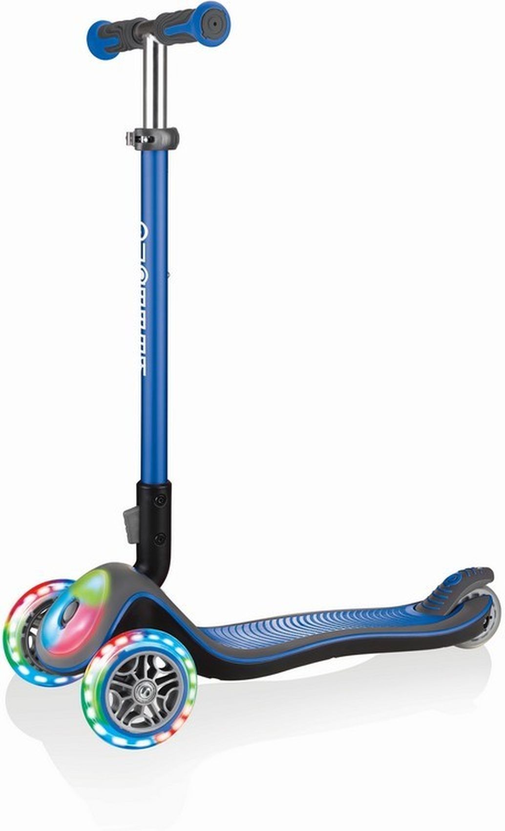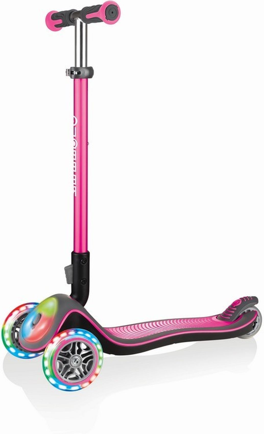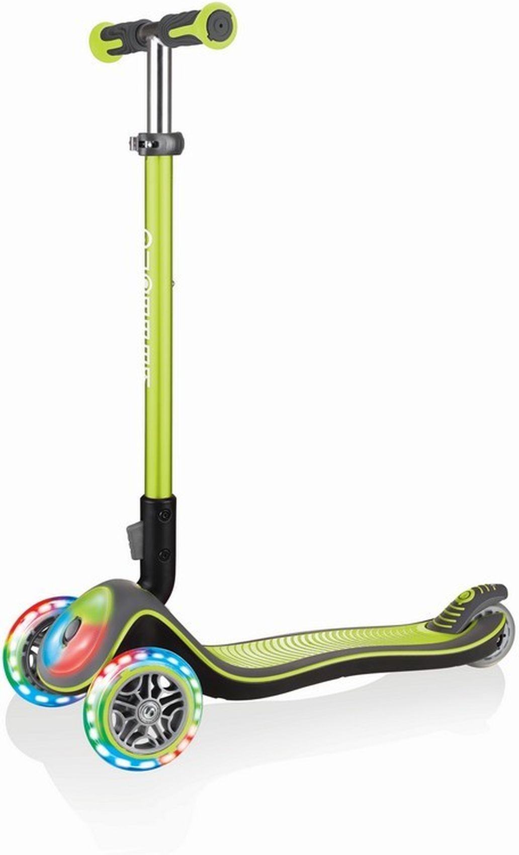 Приятные особенности:Самокат "Globber" Elite Deluxe Flash Lights трёхколёсная устойчивая модель для детей возрастом от 3-х лет. Для лёгкого старта начинающих маленьких гонщиков предусмотрена блокировка поворота передних колёс. Усиленная дека с ребристым и прорезиненным покрытием предотвратит соскальзывание ног. У новинки яркая анодированная стойка руля под общий цвет модели и тактильно мягкие, с упорами, ручки руля. Регулировка по высоте в 4-х позициях, что гарантирует использование не один год. У Elite Deluxe простой и практичный механизм складывания руля, он поворачивается к деке и самокат можно удобно катить за собой. Неизменное фирменное качество и яркий дизайн, а в вечернее время яркая цветная подсветка колёс и деки будет радовать детей и их родителей, сделает самокат заметным на дороге, что немаловажно для безопасного катания!