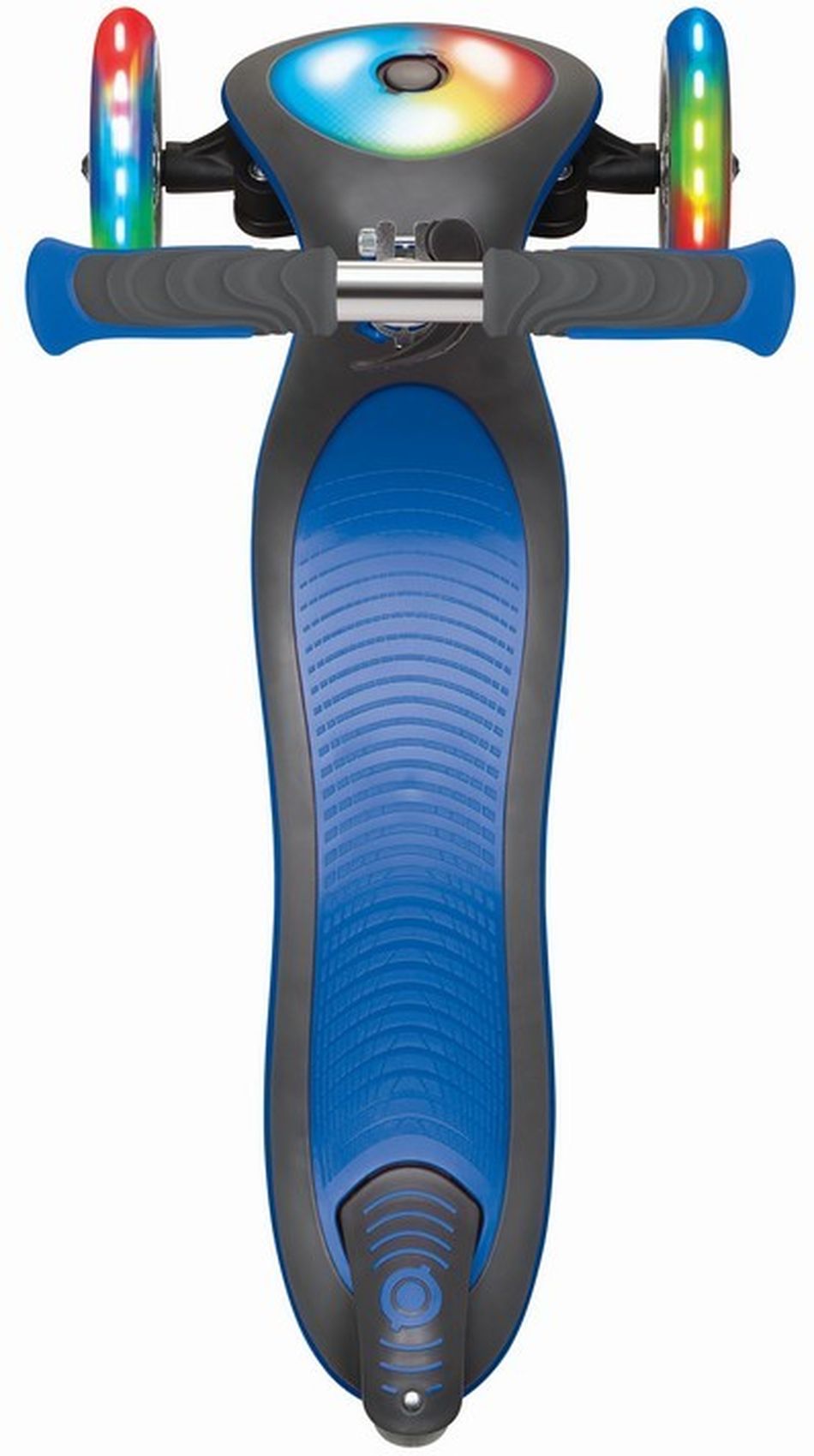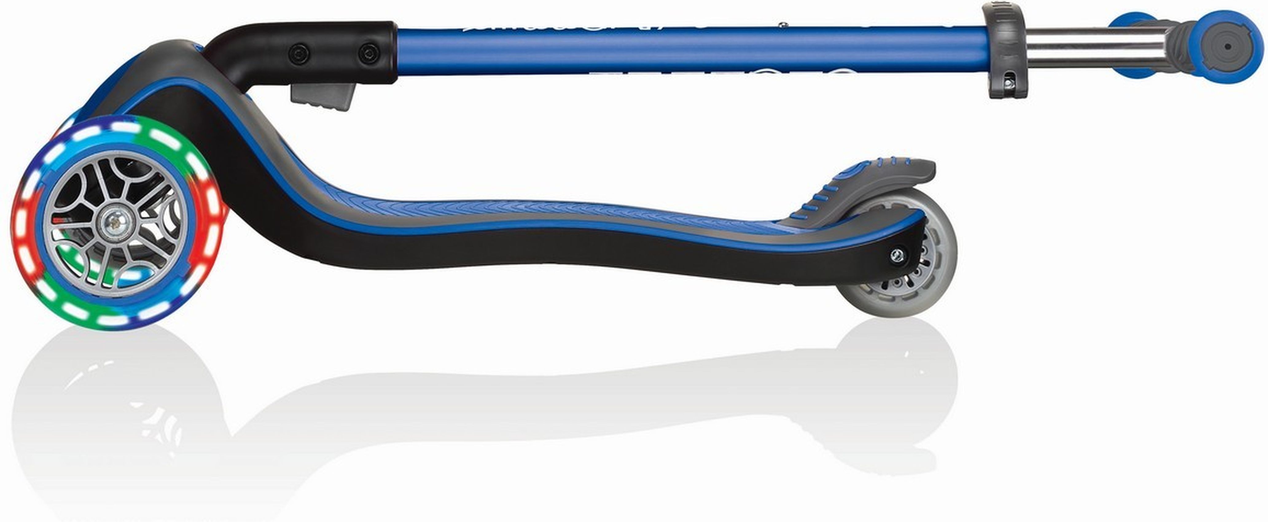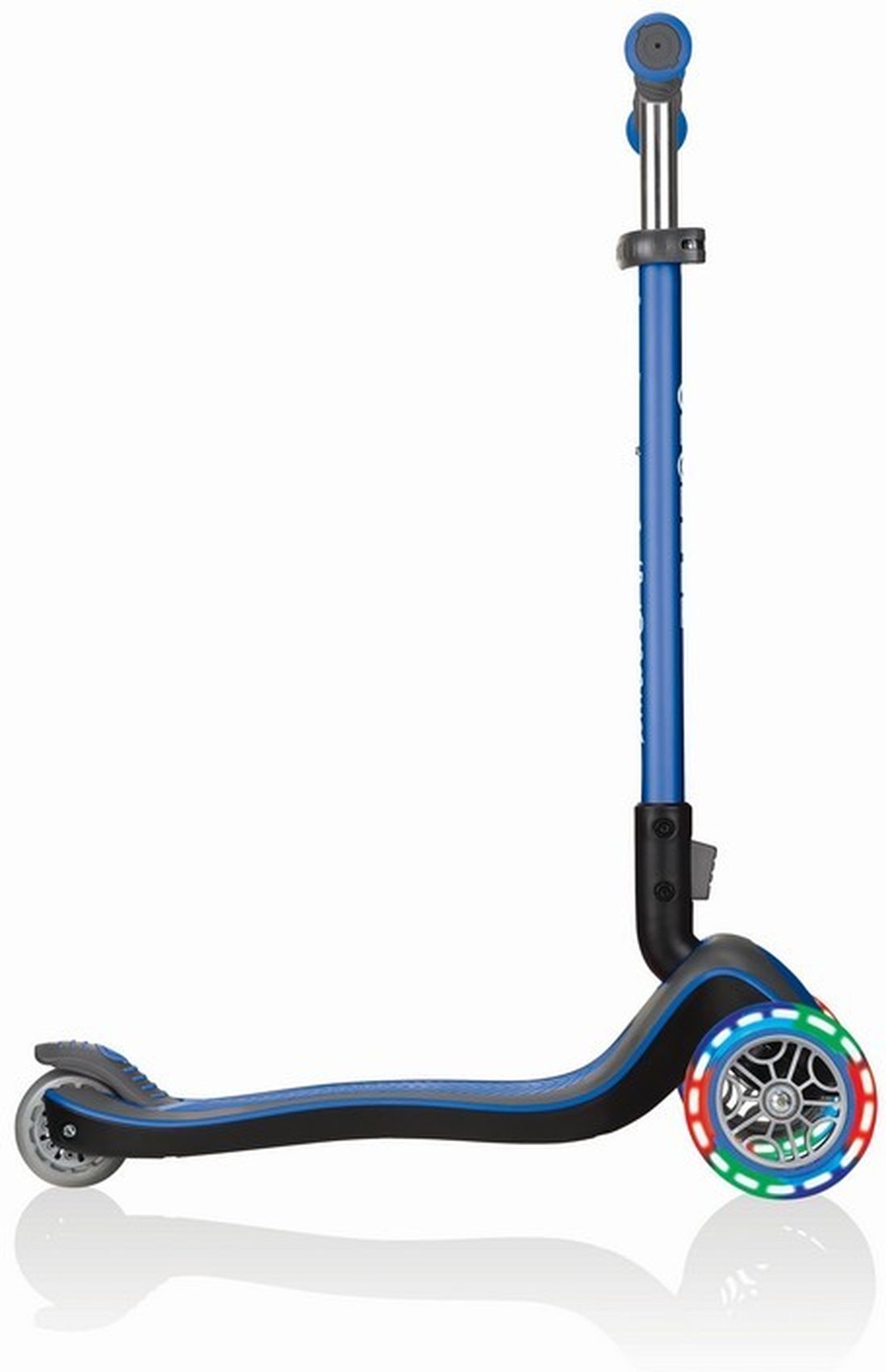 Приятные особенности:Самокат "Globber" Elite Deluxe Flash Lights трёхколёсная устойчивая модель для детей возрастом от 3-х лет. Для лёгкого старта начинающих маленьких гонщиков предусмотрена блокировка поворота передних колёс. Усиленная дека с ребристым и прорезиненным покрытием предотвратит соскальзывание ног. У новинки яркая анодированная стойка руля под общий цвет модели и тактильно мягкие, с упорами, ручки руля. Регулировка по высоте в 4-х позициях, что гарантирует использование не один год. У Elite Deluxe простой и практичный механизм складывания руля, он поворачивается к деке и самокат можно удобно катить за собой. Неизменное фирменное качество и яркий дизайн, а в вечернее время яркая цветная подсветка колёс и деки будет радовать детей и их родителей, сделает самокат заметным на дороге, что немаловажно для безопасного катания!