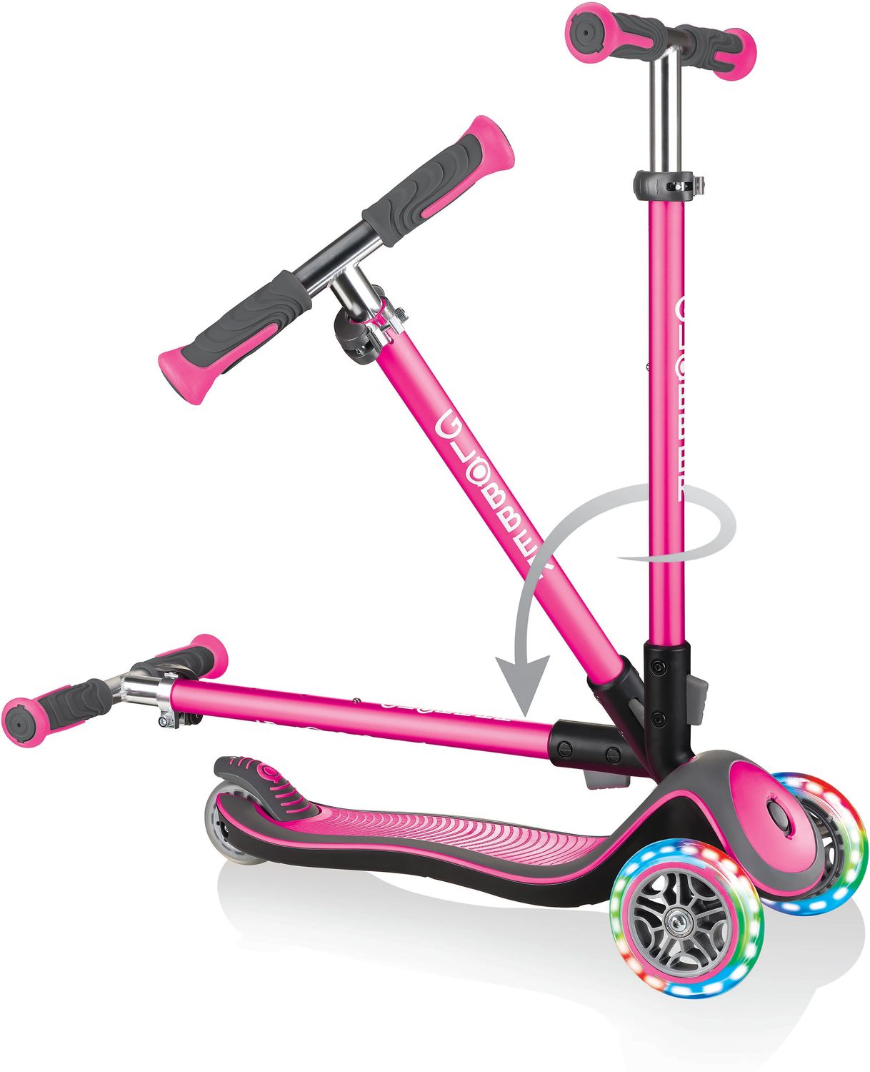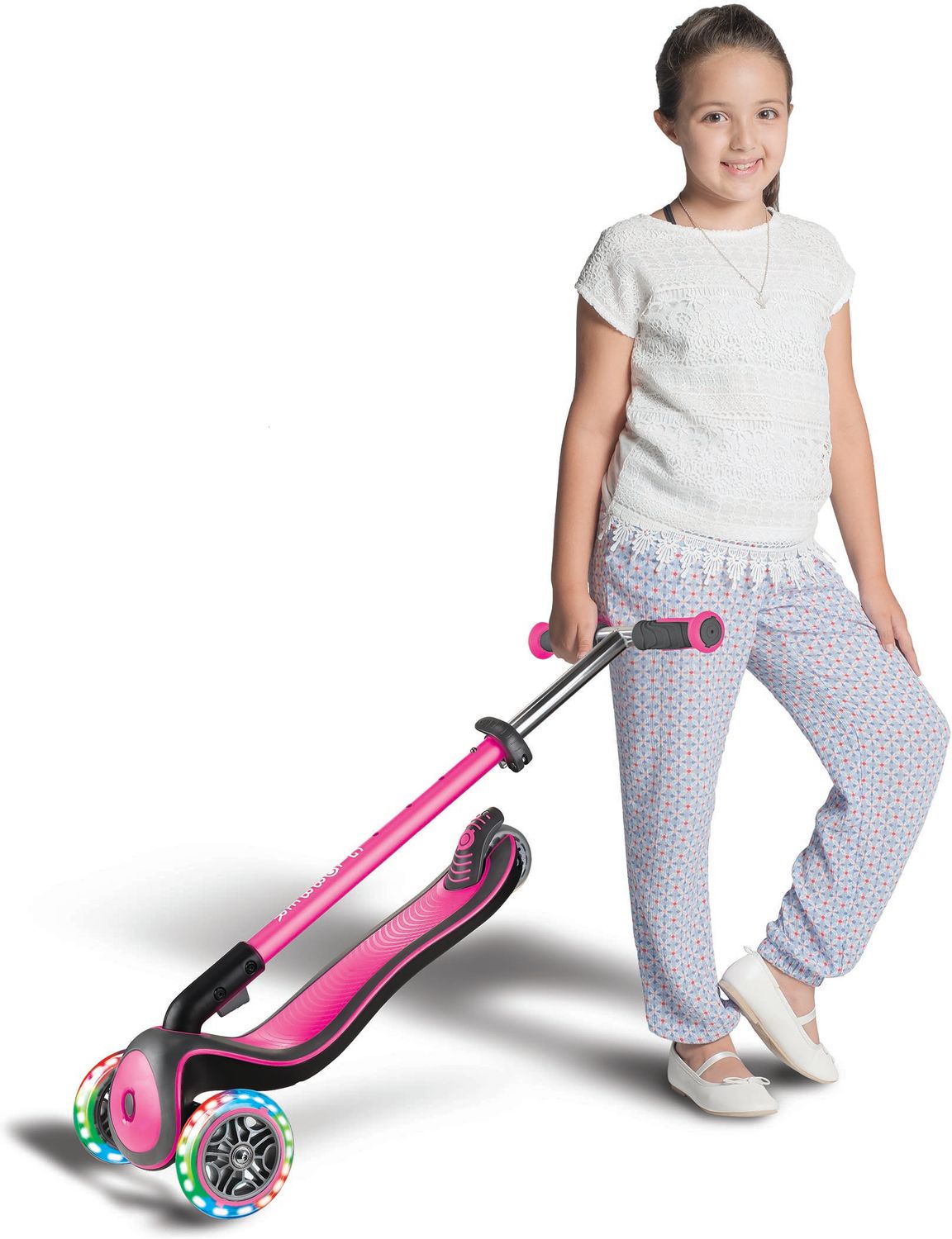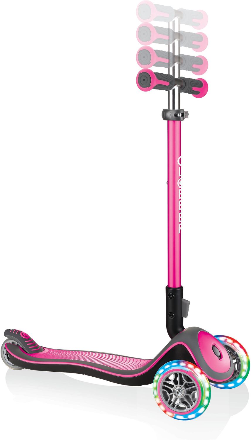 Неизменное фирменное качество и яркий дизайн, а в вечернее время яркая цветная подсветка колёс будет радовать детей и их родителей, сделает самокат заметным на дороге, что немаловажно для безопасного катания!
