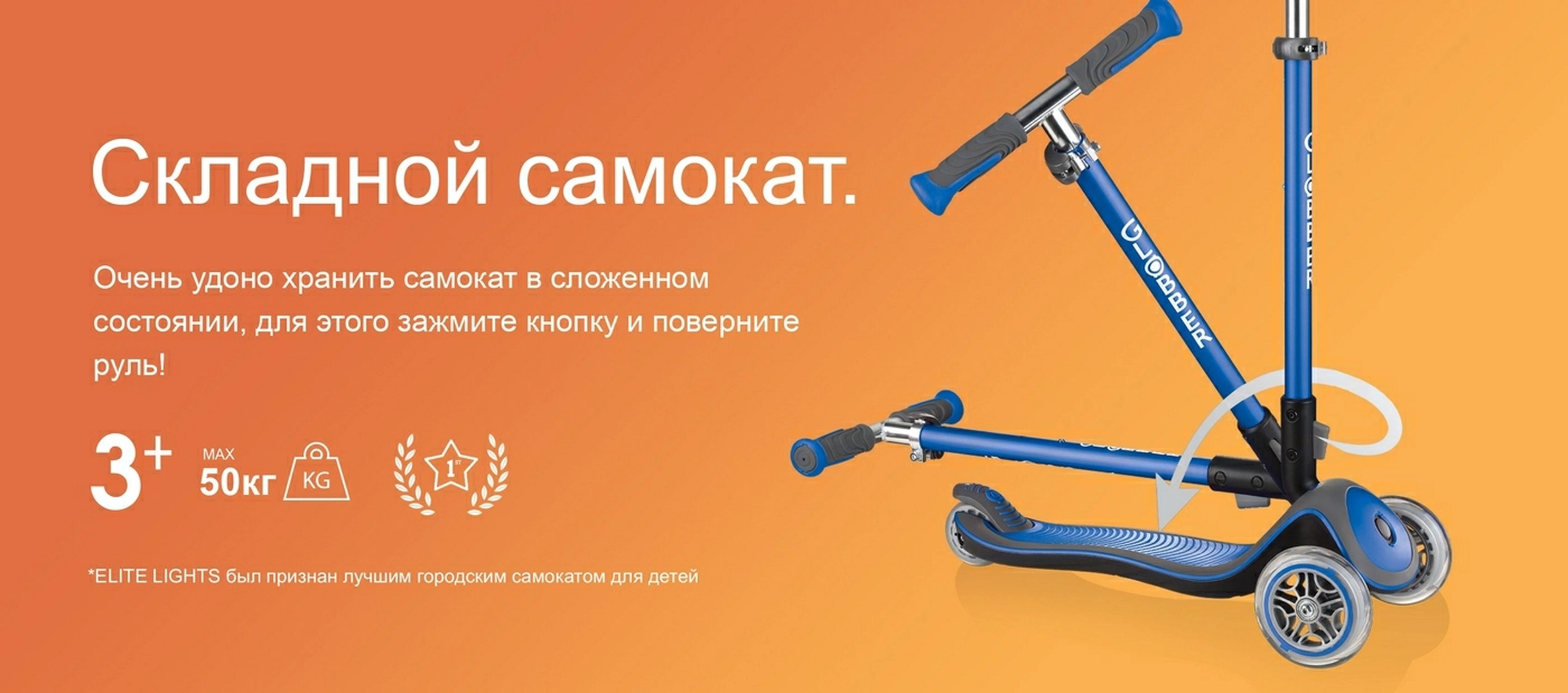 У Elite Deluxe простой и практичный механизм складывания руля, он поворачивается к деке и самокат можно удобно катить за собой.