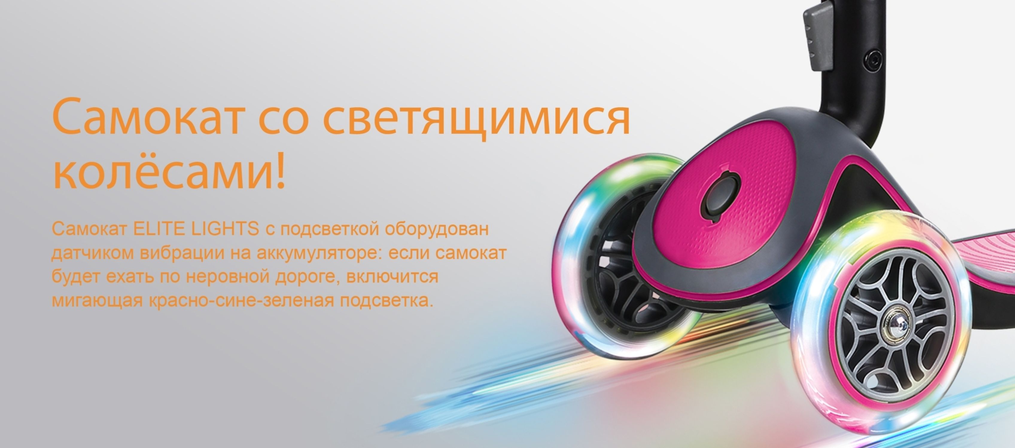 Приятные особенности:Elite Deluxe Lights — трёхколёсная устойчивая модель для детей возрастом от 3-х лет.