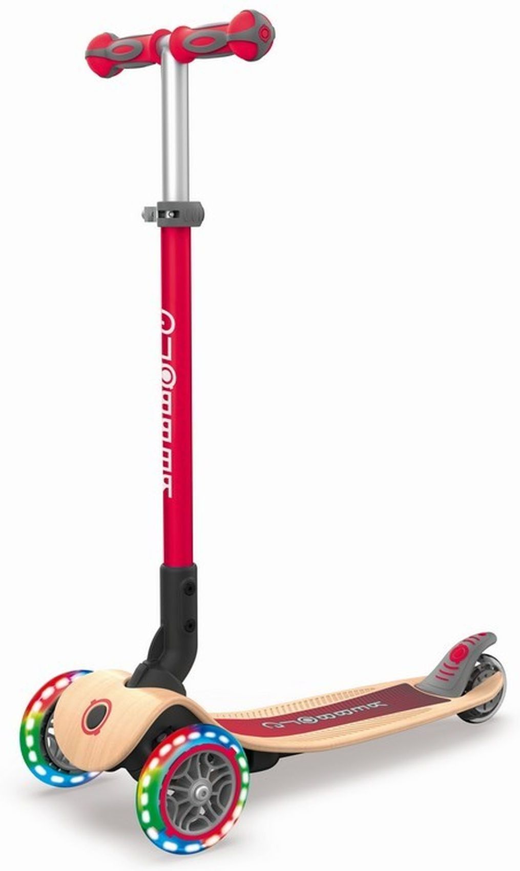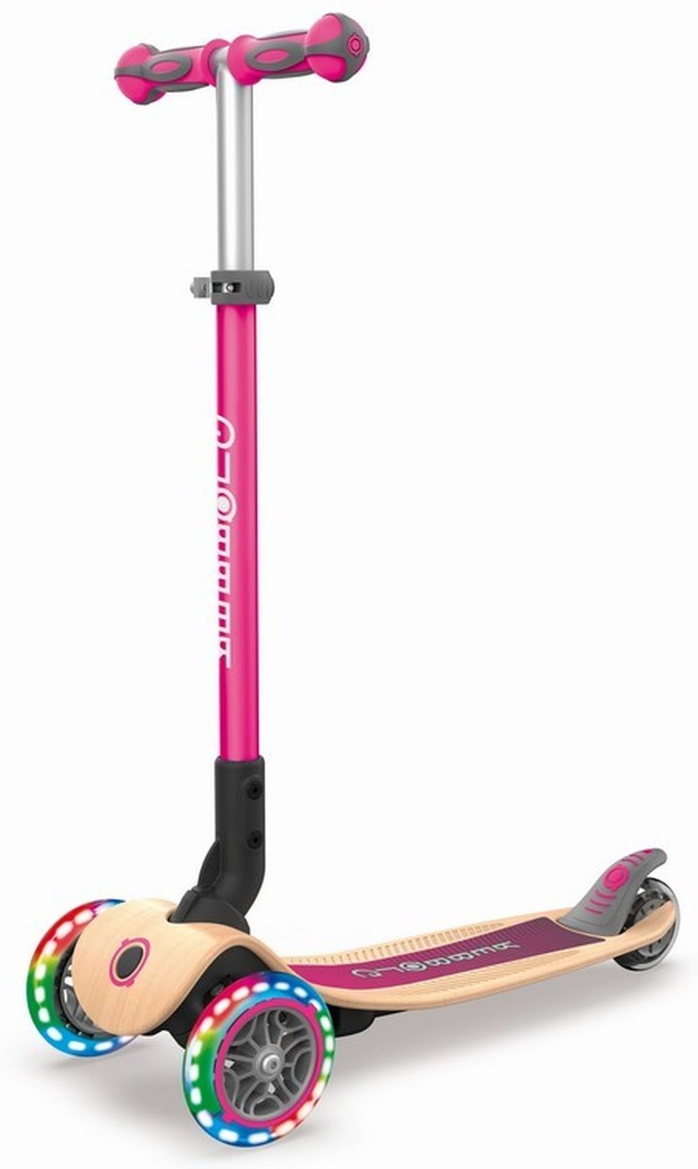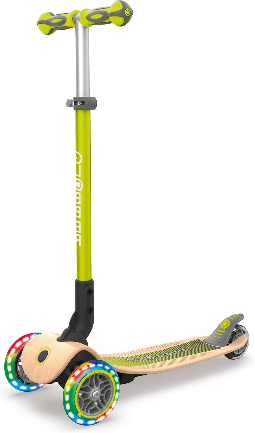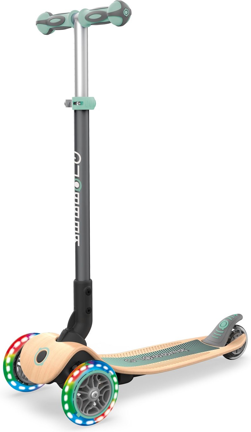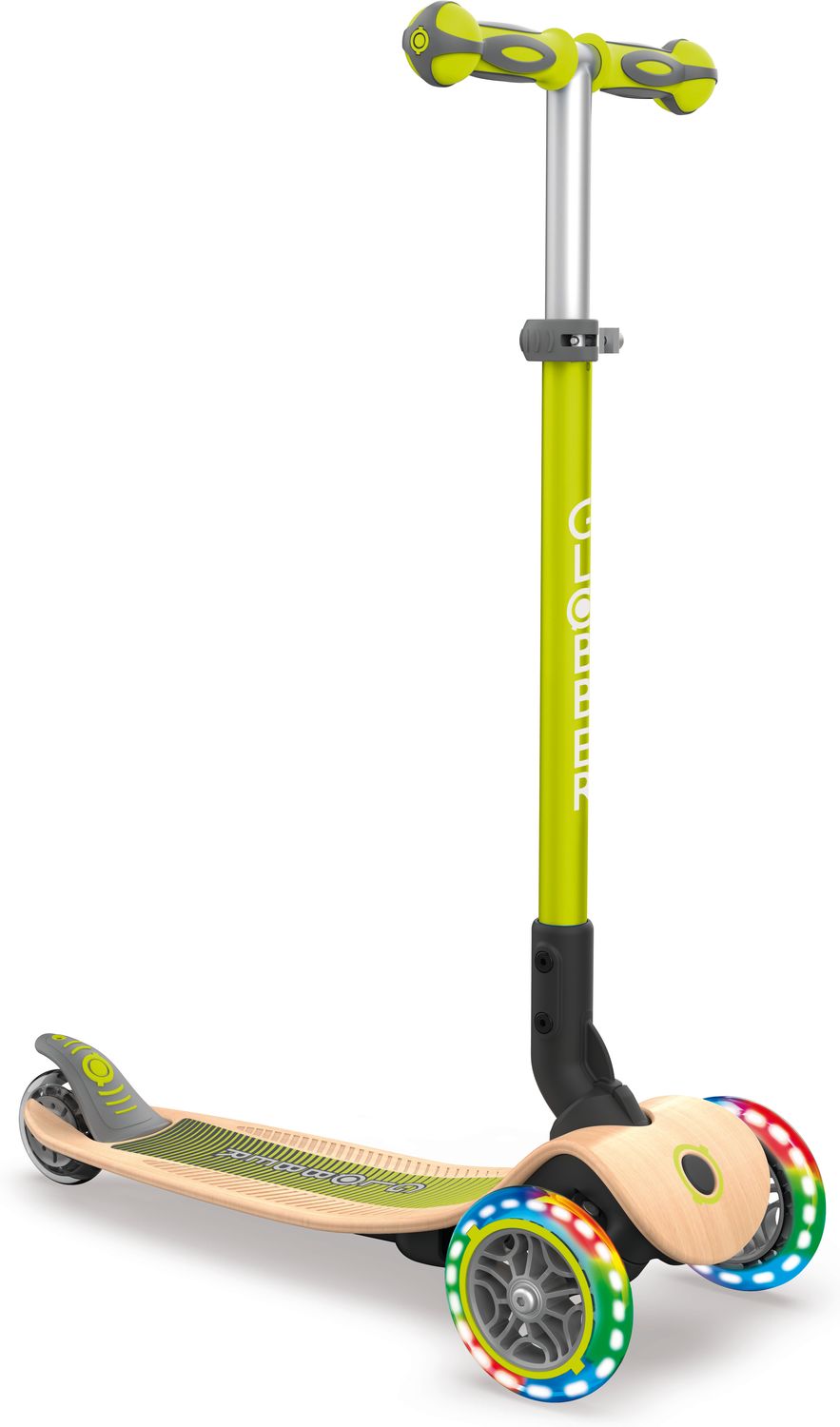 Приятные особенности:Самокат "Globber" Primo Foldable Wood Lights продолжает линейку детских трехколесных самокатов серии Primo от Globber. Эксклюзивность новинки в широкой деке сделанной из дерева. Легкая и прочная из 7-ми слоев дерева, с нескользящим покрытием и ребристой лазерной гравировкой по краям. Надежный экстра широкий тормоз, стильный анодированный руль с регулировкой высоты в 3-х позициях и складным механизмом для удобной транспортировки самоката, ребенок может катить его за собой! Тактильно мягкие эргономичные ручки с упорами и надежные подшипники в колёсах, которые ярко светятся при движении. Эко стиль самоката подчеркнет индивидуальность, а благодаря качеству прослужит не один год!