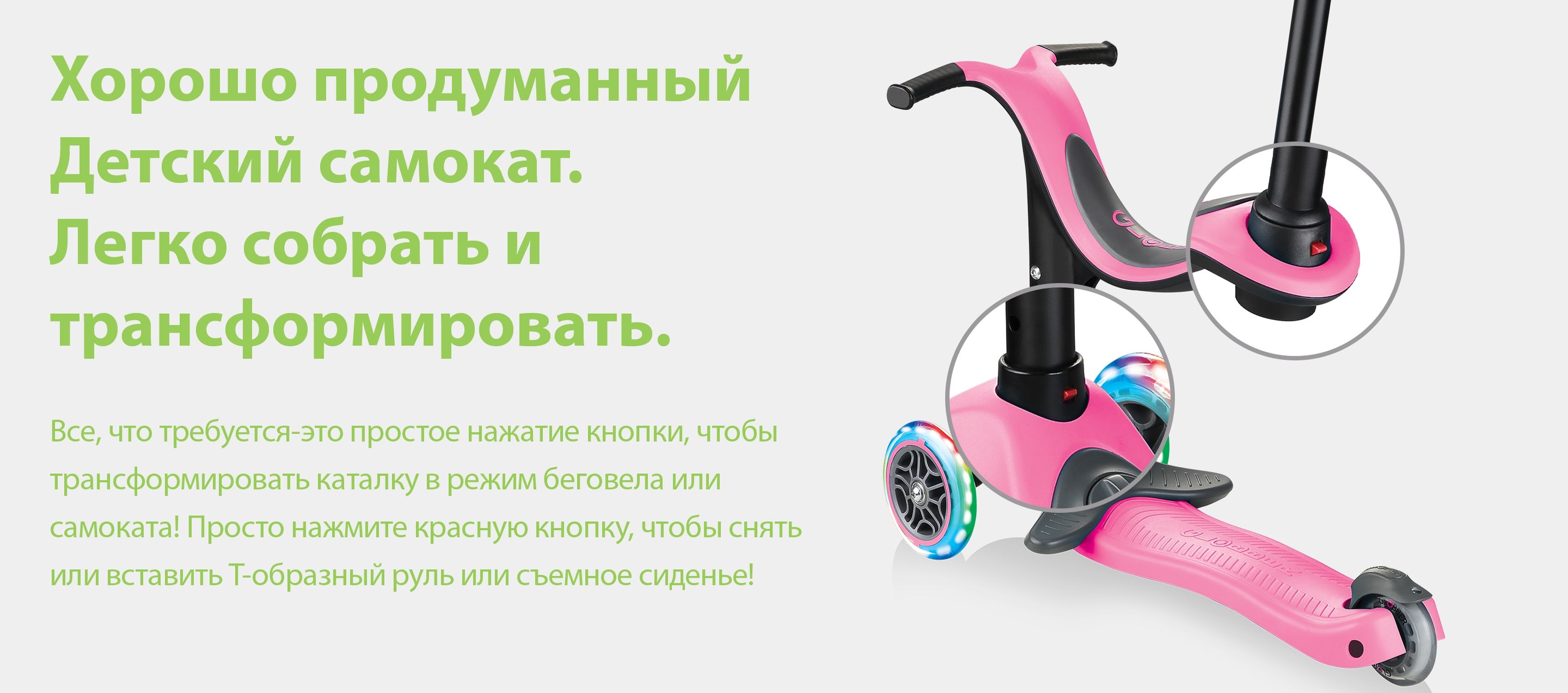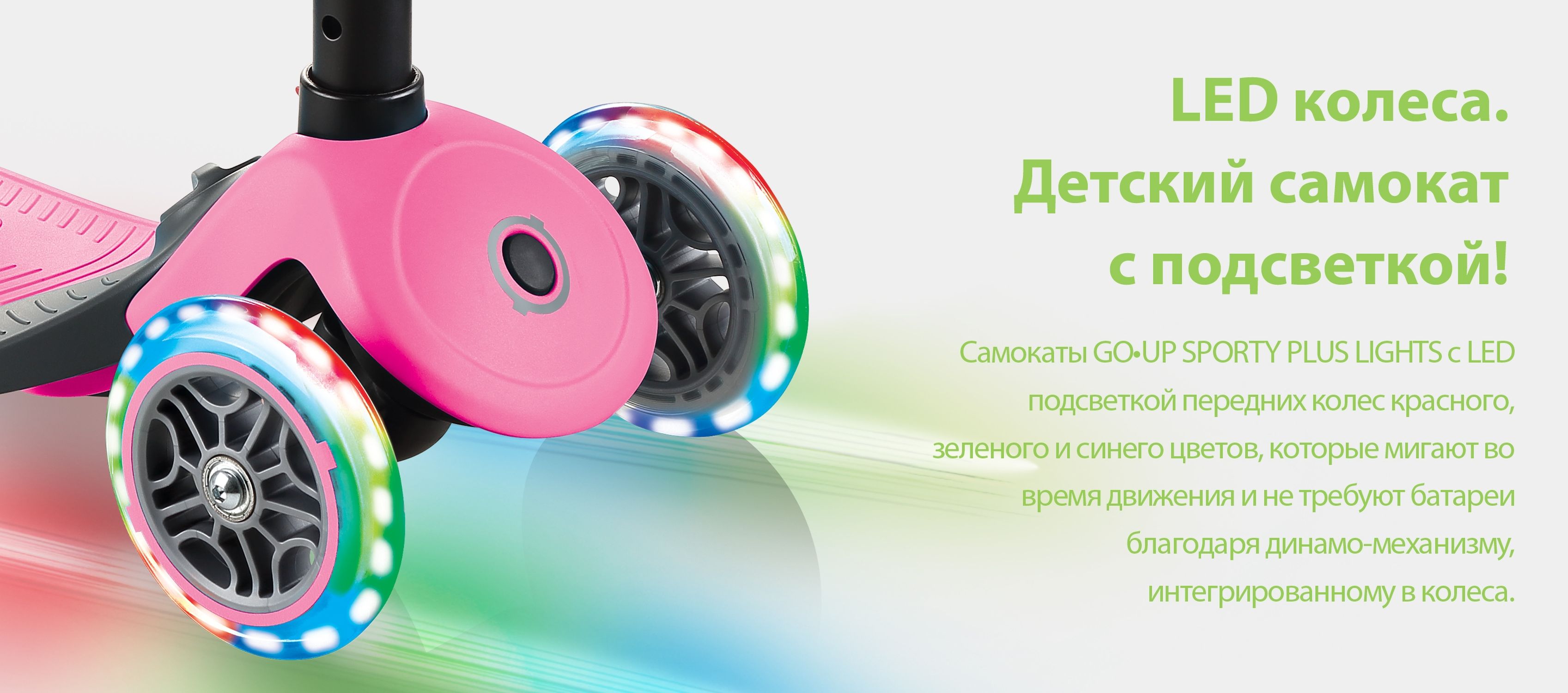 Самокат трансформер со светящимися колесами Globber GO UP SPORTY PLUS LIGHTS