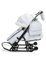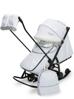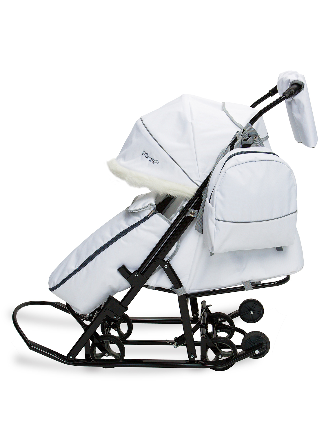 Приятные особенности: Сани-коляска Pikate Arctic - выполнены в обивке из морозостойкой ткани Oxford плотностью 600 D, имеют перекидную ручку, колесную базу и богатую комплектацию. Уникальный дизайн санок смотрится супер модно и стильно. Перекидная ручка позволяет за секунды менять положение ребенка относительно дороги. Выдвижная колесная база предназначена для преодоления незаснеженных участков дороги. Кроме того на полозьях сзади предусмотрены два прорезиненных колеса.
