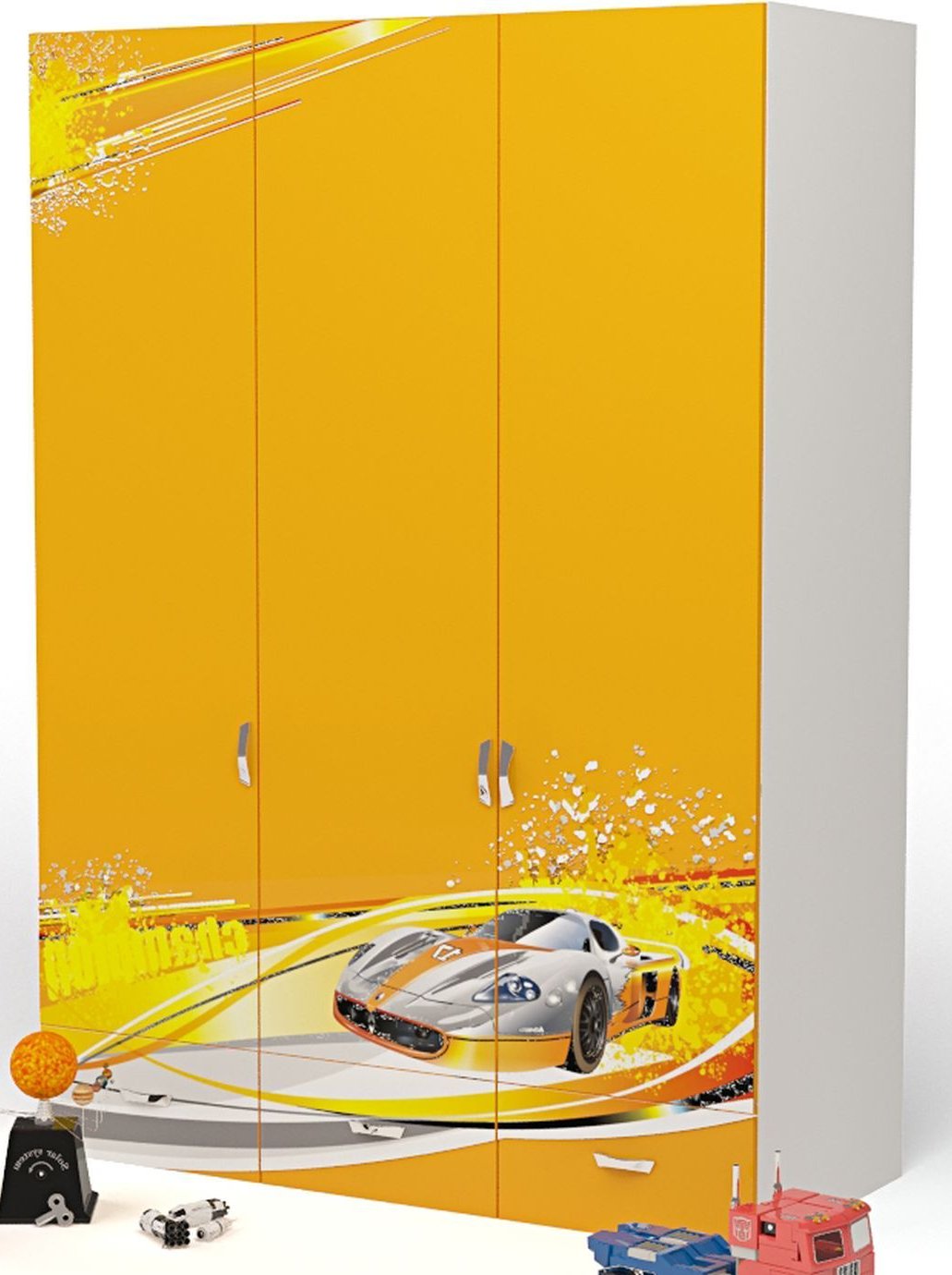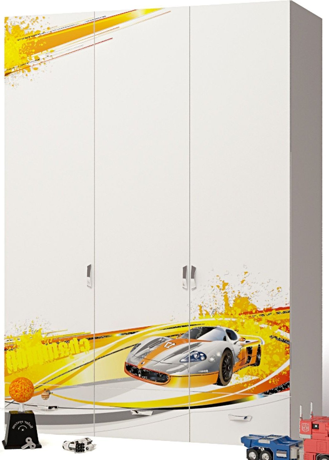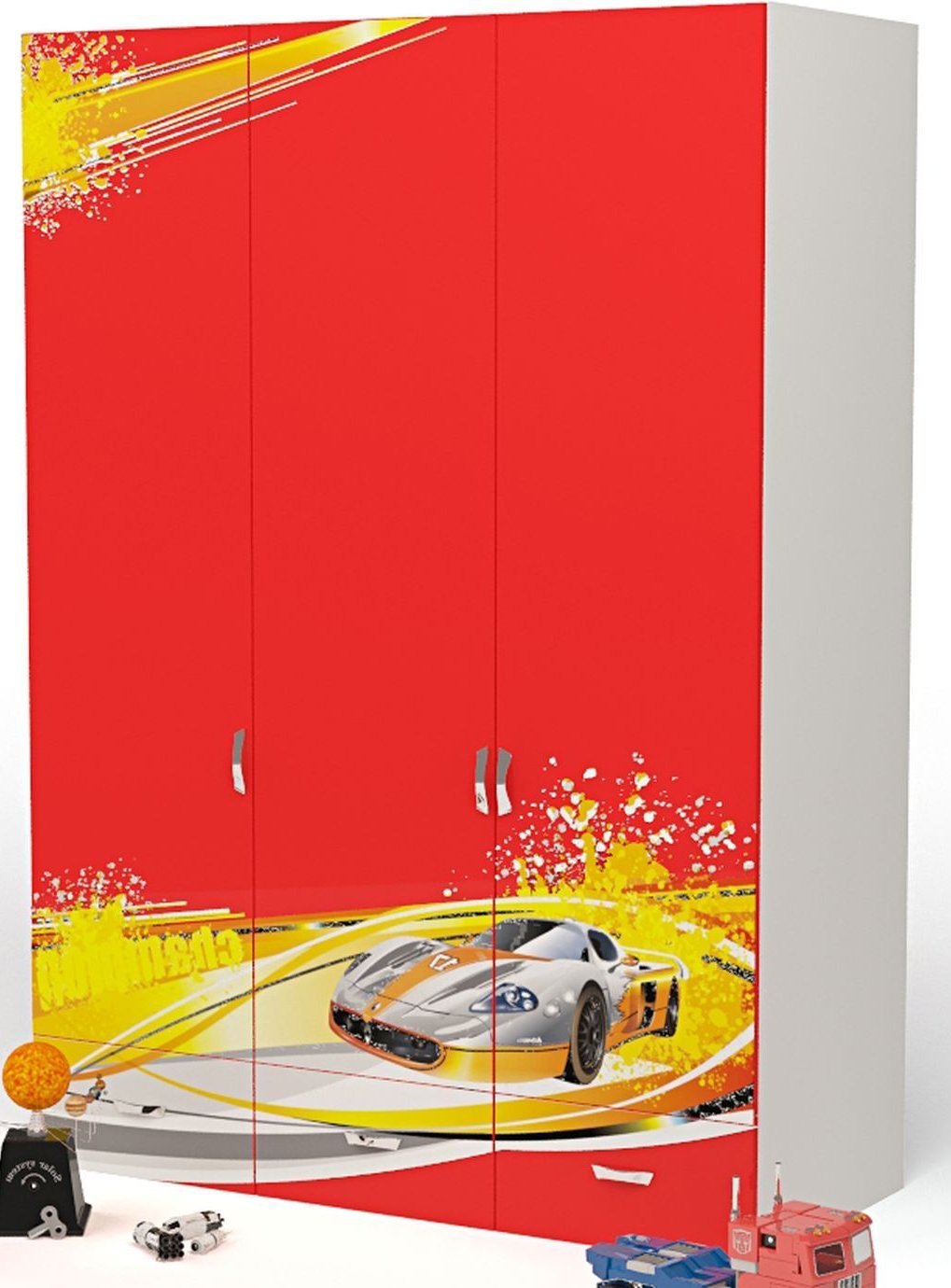 Приятные особенности трехдверного шкафа Advesta Champion: вместительный трехдверный шкаф, незаменимая вещь в комнате маленького озорника! За 2-я распашными дверями шкафа находится отделение со штангой,в верхней части шкафа широкая ниша, за одиночной створкой отделение с полками, в нижней части шкафа три выдвижных ящика. Благодаря такой функциональной мебели ваш ребенок сможет удобно расположить все свои вещи. Сделан из экологически чистых материалов, безопасных для детей. Основой является ДСП производства Германии, где предъявляются самые строгие требования к качеству. Оригинальный дизайн выполнен в общем стиле комнаты, оценит как ребенок, так и взрослый.