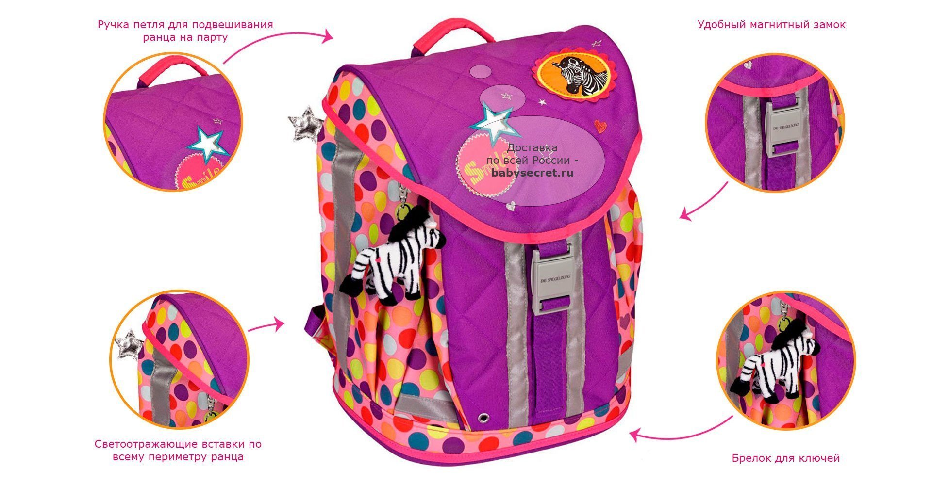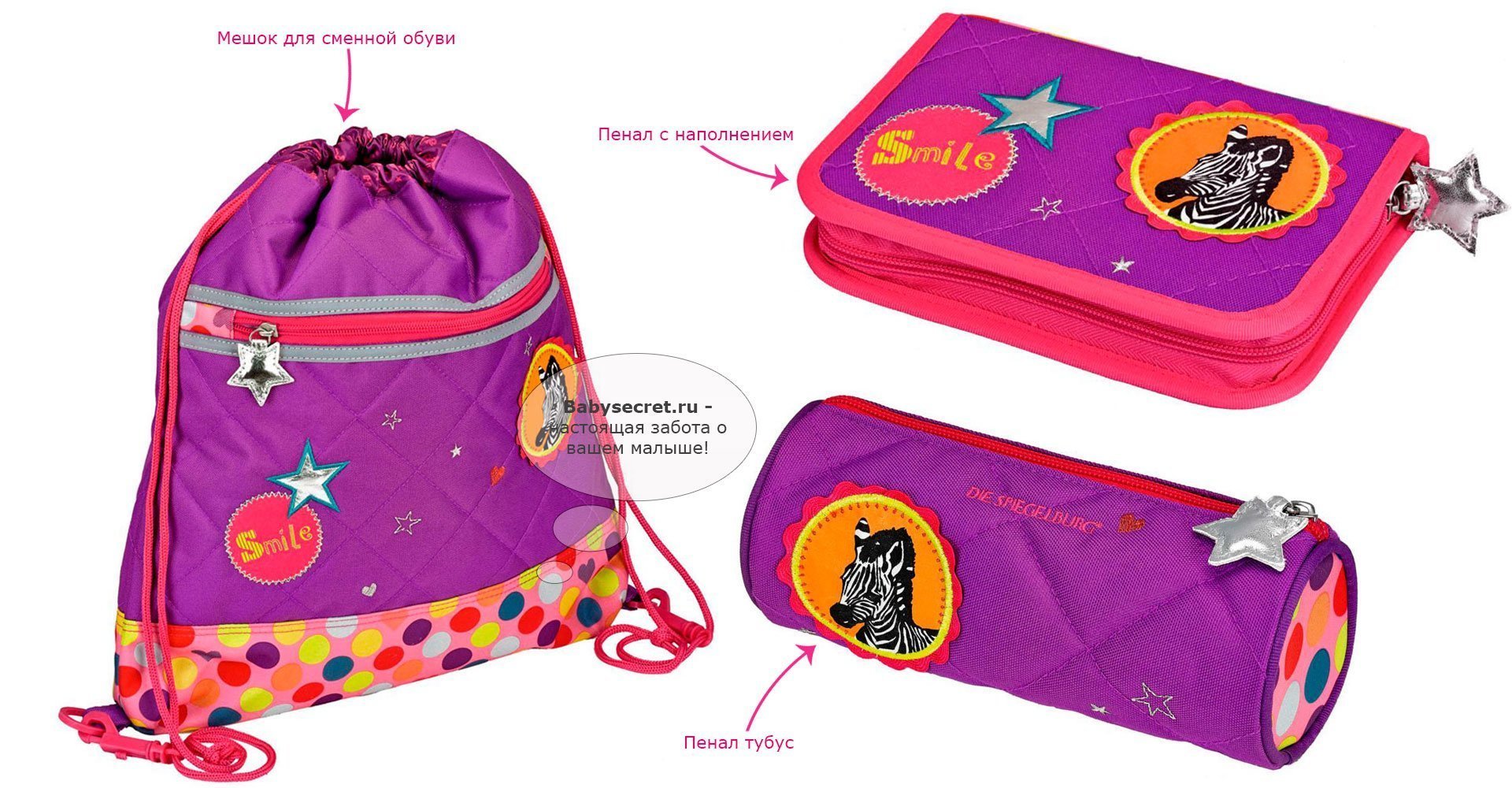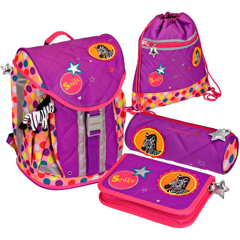 Приятные особенности школьного ранца Spiegelburg Bunte Punkte Flex Style с наполнением 11870:это комплект всего самого необходимого ребенку для школы. Все предметы из набора имеют мягкий фиолетовый цвет, а также украшены надписями, рисунками и зебрами. На ранце есть брелок в виде зебры. В изготовлении были использованы современные и качественные материалы. Рюкзак и ранец довольно вместительные, а в пеналы можно сложить все необходимые канцелярские предметы. Рюкзак произведен в Германии, что говорит о высочайшем уровне качества продукта. Он сделан из водоотталкивающей износостойкой ткани, благодаря чему очень прочен и долго сохраняет отличный внешний вид!