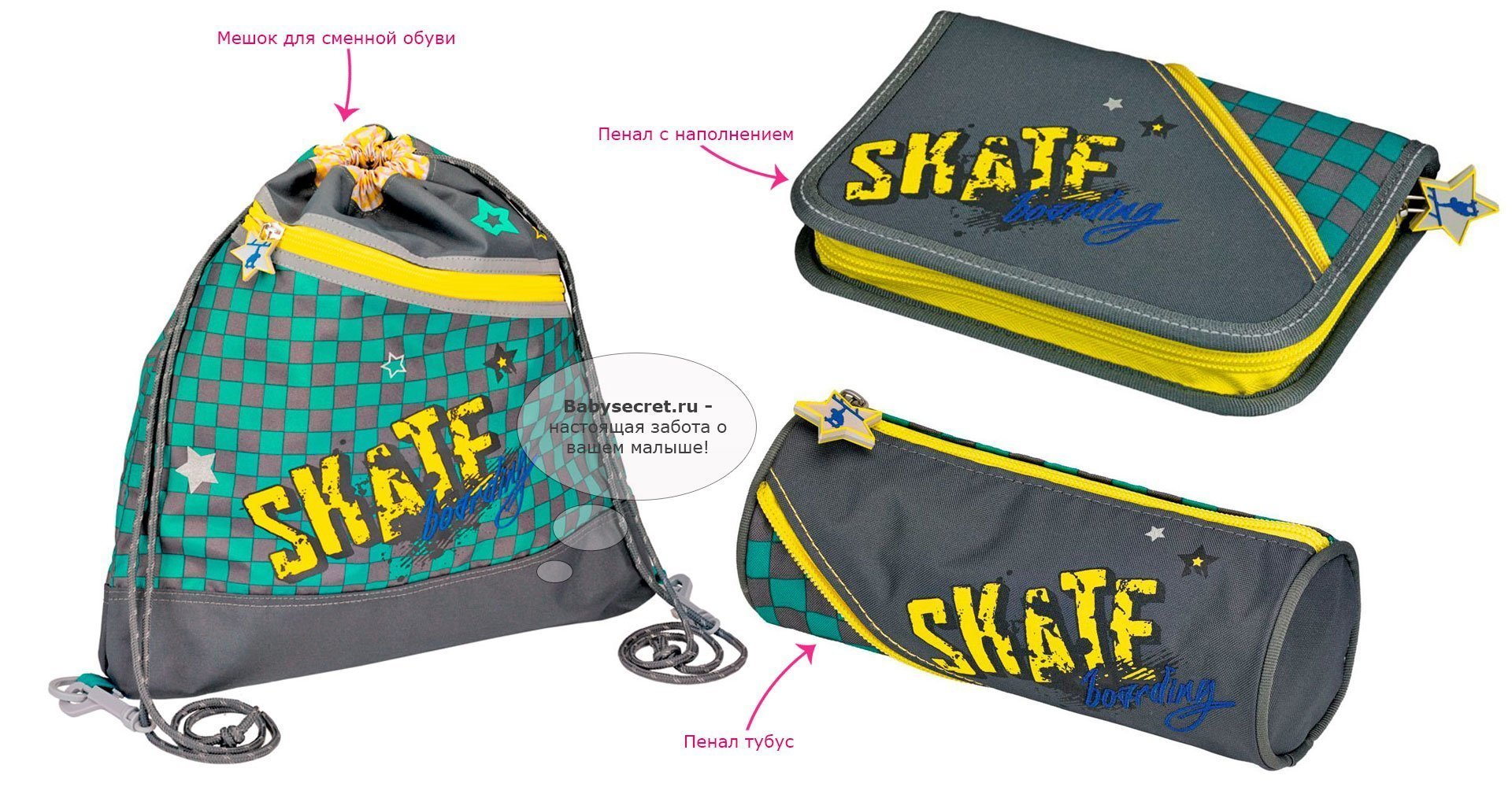 Приятные особенности школьного ранца Spiegelburg SkateboardingErgo Style plus с наполнением 11691:ранец Skateboarding для начальной школы - это настоящее немецкое качество премиум класса! Изготовлен из прочного современного материала с водоотталкивающей пропиткой, пластиковое дно защищает ранец от грязи и делает устойчивым. Ортопедическая спинка и регулируемые ремни позволяют ранцу плотно прилегать к спине ребёнка, и, тем самым, равномерно распределить вес и выровнять осанку. Просторные боковые карманы рассчитаны под бутылочку с водой и коробку для завтрака. Вместительный ранец Skateboarding позволяет удобно и функционально разместить все школьные принадлежности!