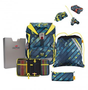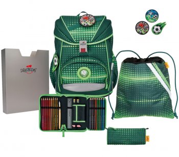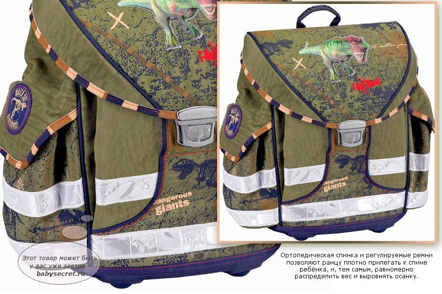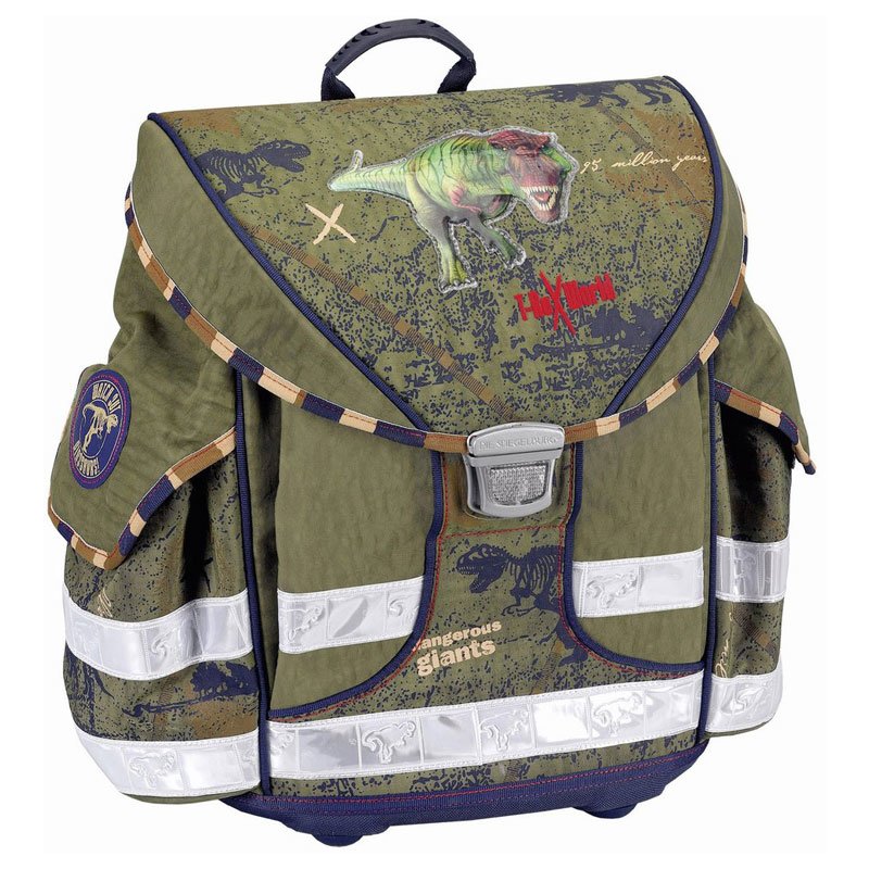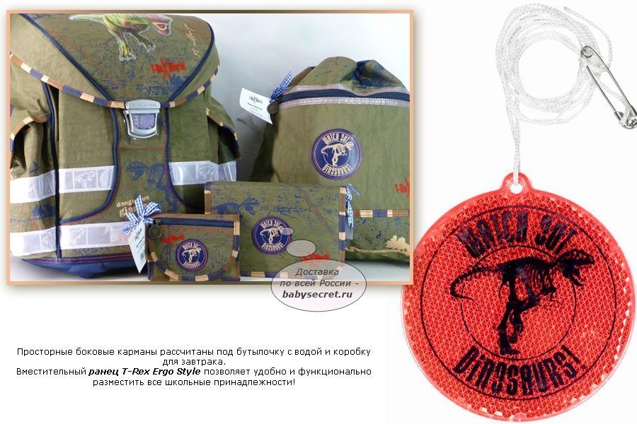 Приятные особенности ранца Spiegelburg T-Rex Ergo Style с наполнением: ранец T-Rex Ergo Style для начальной школы - это настоящее немецкое качество премиум класса! Изготовлен из прочного современного материала с водоотталкивающей пропиткой,пластиковое дно защищает ранец от грязи и делает устойчивым.Ортопедическая спинка и регулируемые ремни позволяют ранцу плотно прилегать к спине ребёнка, и, тем самым, равномерно распределить вес и выровнять осанку.В металлический замок, на боковые и переднюю панели вставлены светоотражающие элементы из материала 3М, для безопасности ребенка на дороге.Просторные боковые карманы рассчитаны под бутылочку с водой и коробку для завтрака.Вместительный ранец T-Rex Ergo Style позволяет удобно и функционально разместить все школьные принадлежности!