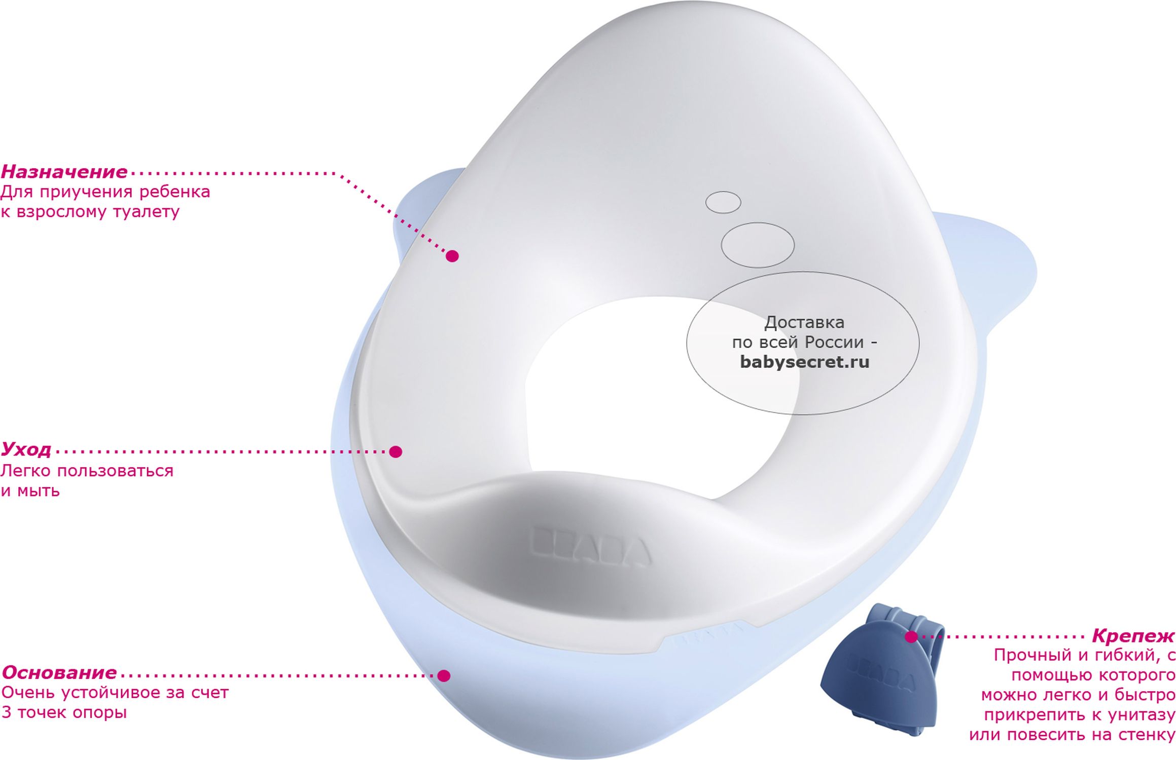 Приятные особенностисидения для унитаза Beaba Toilet trainer seat:используя это сидение вы легко и без волнений переведете ребенка на взрослый унитаз.
