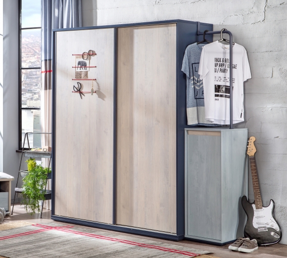Приятные особенности:Шкаф Cilek Trio предназначен не только для хранения вещей, но и для придания определенной атмосферы комнаты мальчика-подростка. Фасад изготовлен из листового материала МДФ, отличающегося прочностью, влагостойкостью и экологичностью. Находящиеся внутри штанга, а также большое количество глубоких полок и ящиков, вместят достаточно одежды и обуви. Бесшумные двери-купе не займут лишнее пространство и оставят больше места для проведения веселых развлечений и игр в холодное и дождливое время года.