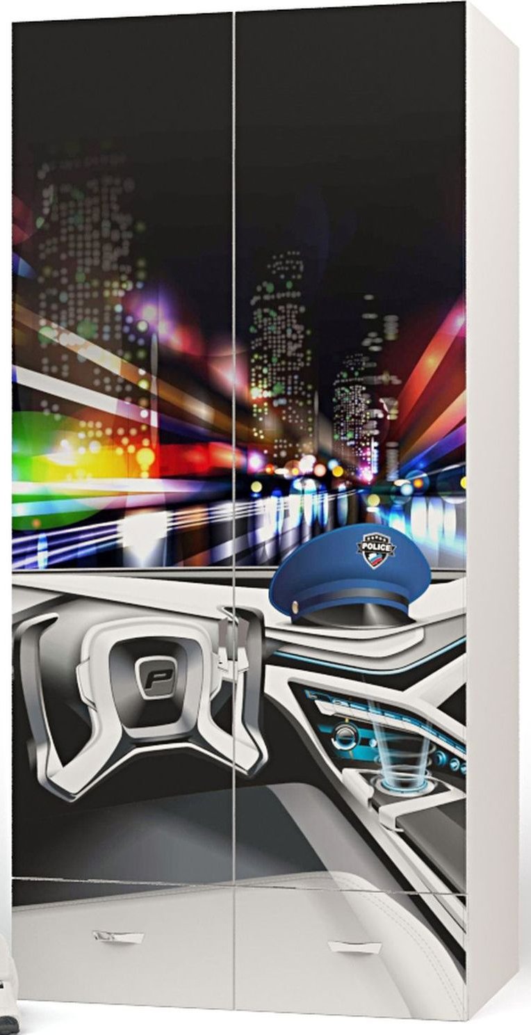 Приятные особенности двухдверного шкафа Police: вместительный двухдверный шкаф, незаменимая вещь в комнате маленького озорника! Имеет два выдвижных ящика, отделение с полочками, а так же отделение со штангой для вешалок. Благодаря такой функциональной мебели ваш ребенок сможет удобно расположить все свои вещи. Сделан из экологически чистых материалов, безопасных для детей. Основой является ДСП производства Германии, где предъявляются самые строгие требования к качеству. Оригинальный дизайн с яркими изображениями оценит как ребенок, так и взрослый.