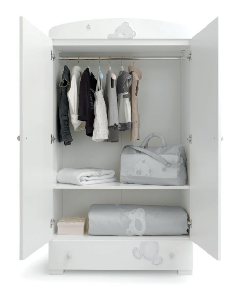 Приятные особенности :Шкаф двухдверный Erbesi Bubuотлично дополнит детскую комнату, создав в ней атмосферу комфорта, умиротворенности и спокойствия. Вы можете сочетать его не только с мебелью коллекции Bubu, но и с любой другой мебелью. Ведь он выполнен в нейтральном цвете, который идеально впишется в любой интерьер. Erbesi не только делает акцент на стиле и красоте, но и заботится о малышах. Функциональность и вместительность сочетаются со стильным дизайном. Внутри одна полка и отделение с вешалкой для одежды — чтобы все вещи были в идеальном порядке и не мялись. Снизу есть выдвижной ящик, где Вы можете хранить постельное бельё, полотенца и любые другие вещи. Кроме того, Вы сами выбираете яркий акцент в виде декоративных бантиков!