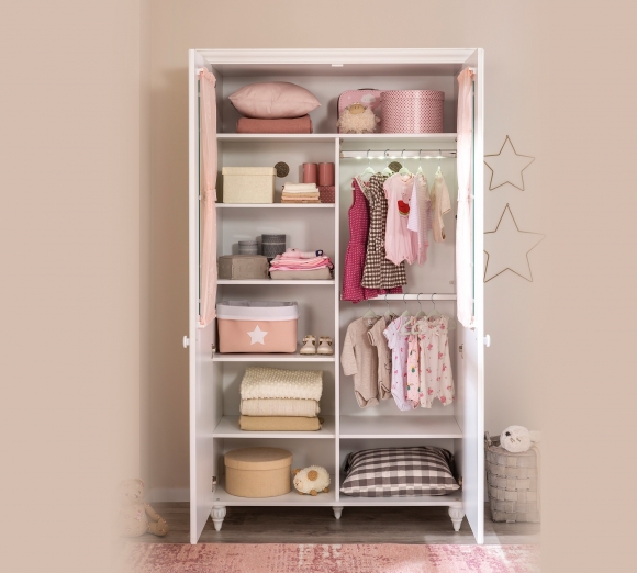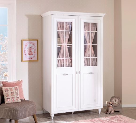 Приятные особенности:Двухстворчатый шкаф Cilek Romantic представляет собой предмет мебели из серии «Детские шкафы». Это красивый, изящный, отличающийся затейливыми деталями внешнего вида предмет для размещения вещей девочек. Его корпус выполнен из материала ЛДСП, а фасад – из нежнейшего светлого МДФ.Фасад шкафа имеет затейливую классическую отделку, напоминающую тенденции мебели 19 века. Створки шкафа до середины застеклены, стекла покрыты декоративной отделочной решеткой. Еще одна интересная декоративная деталь – нежные розовые шторки внутри шкафа за стеклом, схваченные посередине небольшим кантом. Это подчеркивает романтический стиль, в котором и выполнен весь шкаф. Нижняя фасадная часть тоже имеет декоративную отделку, дополняют ее ножки шкафа, конусообразные, тоже украшенные декоративной отделкой.Внутри шкаф имеет три отдела – верхний, в виде антресоли, которая может вместить объемные коробки и ящички, не требующиеся ежедневно. Нижняя часть разделена на две половины, одна из них с четырьмя полками для одежды, вторая имеет полку снизу, а сверху – штанги в два яруса для вешалок-плечиков. Внутреннее устройство характеризует его универсальную вместительность.