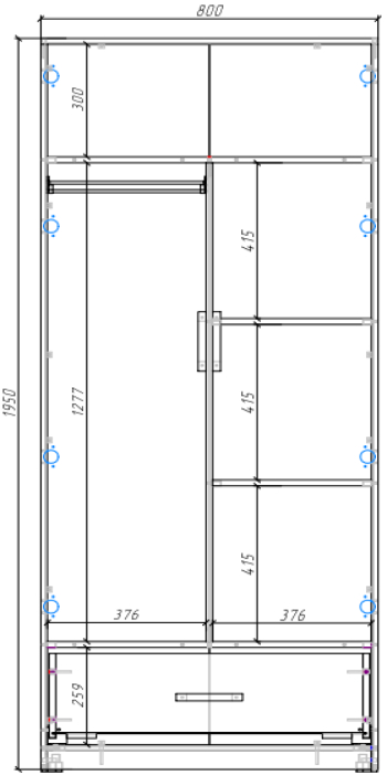 • Шкаф La-Man имеет один выдвижной ящик, отделение с полочками, а так же отделение со штангой для вешалок