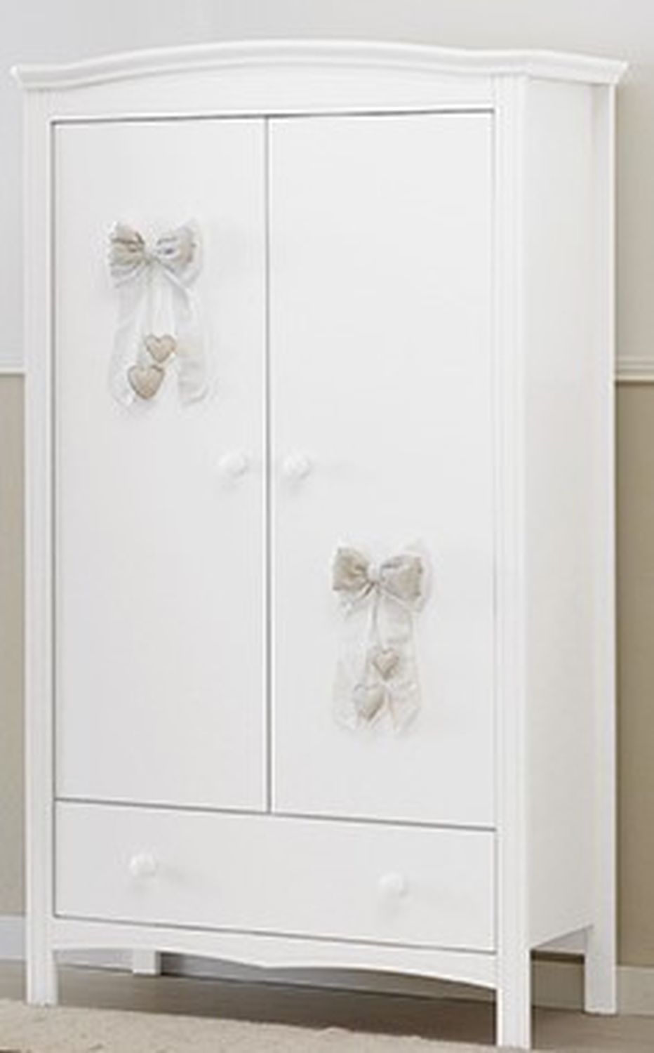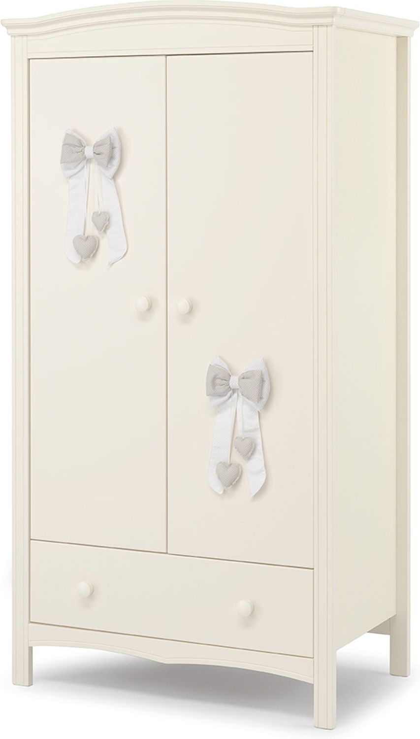 Приятные особенности:Шкаф двухдверный Erbesi Lilli - вместительный шкаф изготовлен из ДСП класса Е1 с низким уровнем эмиссии формальдегида, покрыт ПВХ материалом; задние панели шкафа изготовлены из прочного ДСП, чтобы сделать конструкцию более прочной и устойчивой; внутренняя горизонтальная полка регулируется по высоте; вешалка для одежды и глубокий внешний выдвижной ящик.