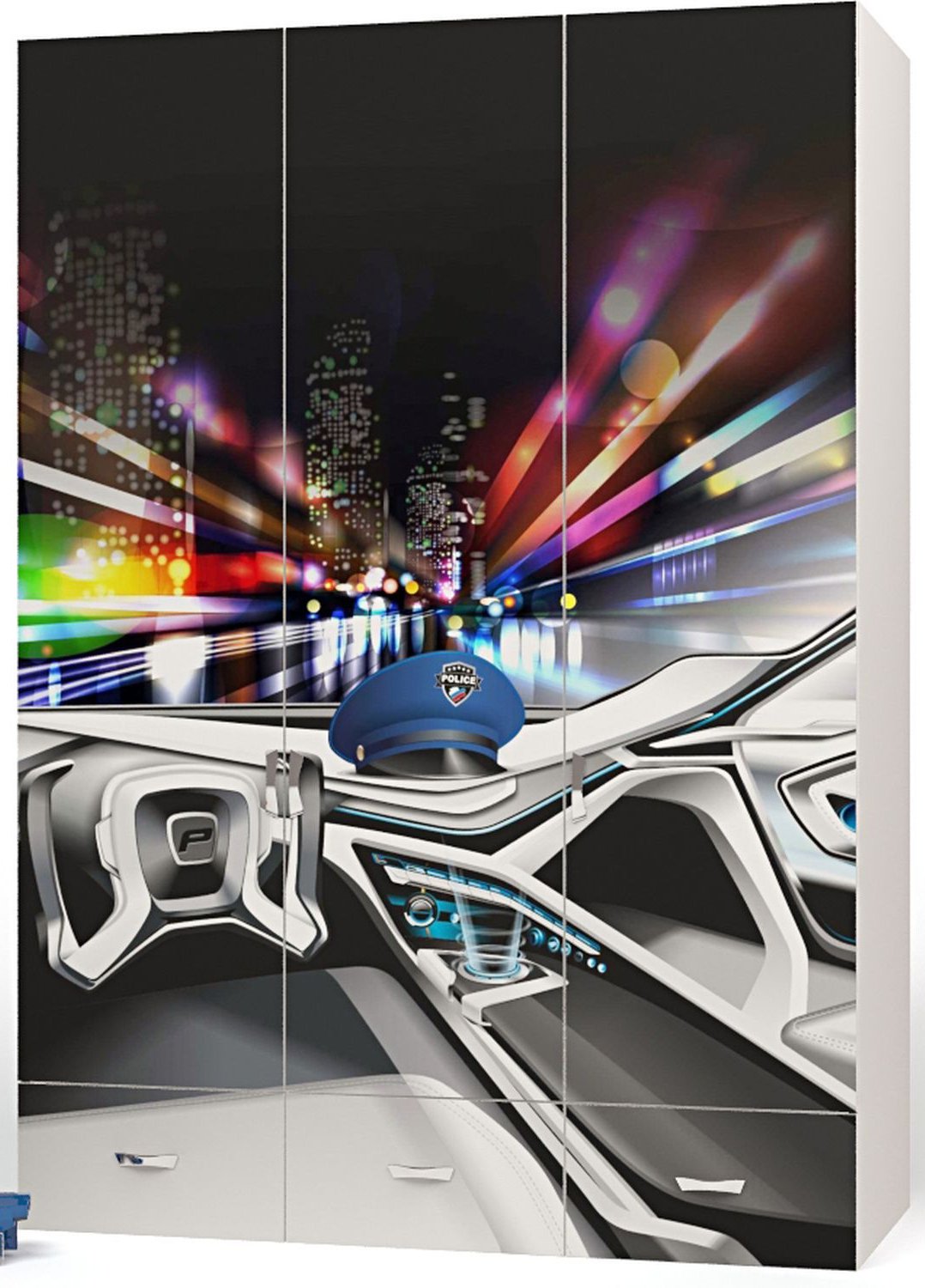 Приятные особенности трехдверного шкафаABC KingPolice: вместительный трехдверный шкаф, незаменимая вещь в комнате маленького озорника! Имеет три выдвижных ящика, отделение с полочками, а так же отделение со штангой для вешалок. Благодаря такой функциональной мебели ваш ребенок сможет удобно расположить все свои вещи. Сделан из экологически чистых материалов, безопасных для детей. Основой является ДСП производства Германии, где предъявляются самые строгие требования к качеству. Оригинальный дизайн с яркими изображениями оценит как ребенок, так и взрослый.