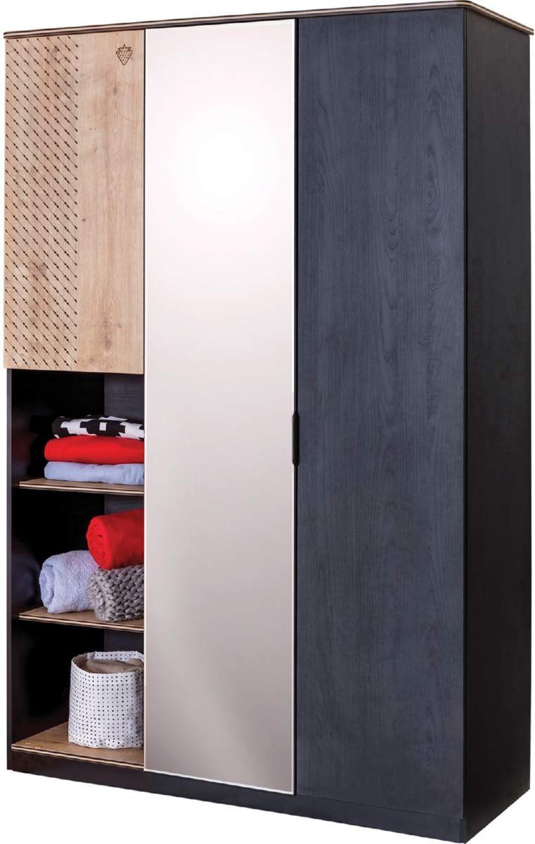 Приятные особенности:Трехстворчатый шкаф Cilek Black 20.58.1002.00 представляет собой интересный и затейливый предмет мебели из серии «Детские шкафы». Он привлекает внимание покупателей своим внешним видом, заметно отличающим его привычных шкафов.Он имеет три створки, левая из которых выполнена из фасадного МДФ и не представляет собой ничего необычного. Центральная дверца – зеркальная, что очень удобно для детской комнаты ( не нужно дополнительное зеркало). Правая часть шкафа разделена на верхнюю часть и нижнюю. Верхняя часть имеет дверцу с декоративным пескоструйным рисунком, за ней внутри несколько полок, нижняя часть является открытой, она состоит из трех вместительных отсеков с полками. Они могут использоваться для размещения вещей, которые постоянно в обиходе.Внутри, за левой и центральной дверцами, расположена верхняя полка-«антресоль», чуть ниже идет пространство со штангой для вешалок с одеждой. Ниже - еще одна штанга для сумок и других подобных вещей. Самый низ отделен полкой, но тоже достаточно вместителен.Шкаф необычен по своему внешнему виду и может успешно дополнить любой интерьер детской комнаты.