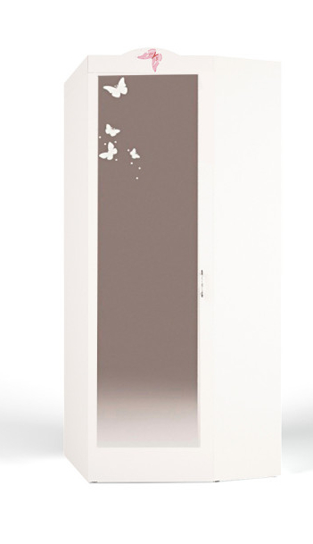 Приятные особенности:Угловой шкаф с зеркалом Фея оснащён большим зеркалом на дверце и имеет два варианта цвета каркаса на выбор: белый и розовый. Внутреннее наполнение углового шкафа для детской комнаты включает комфортные полки для белья и вместительную штангу для вешалок. Конструкция шкафа выполнена из прочных сертифицированных материалов высокого качества.