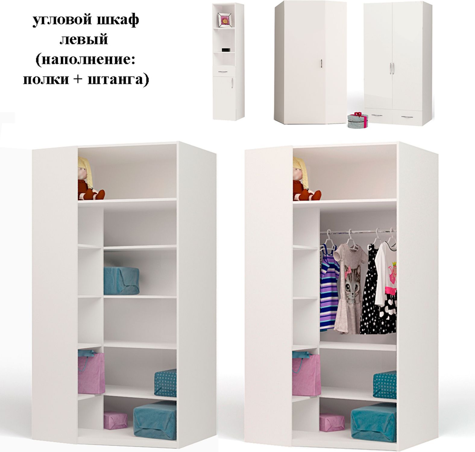 Шкаф угловой ABC King Princess без зеркала (правый или левый) Белый левыйШкаф угловой ABC King Princess без зеркала (правый или левый) Белый правыйШкаф угловой ABC King Princess без зеркала (правый или левый) Розовый левыйШкаф угловой ABC King Princess без зеркала (правый или левый) Розовый правый