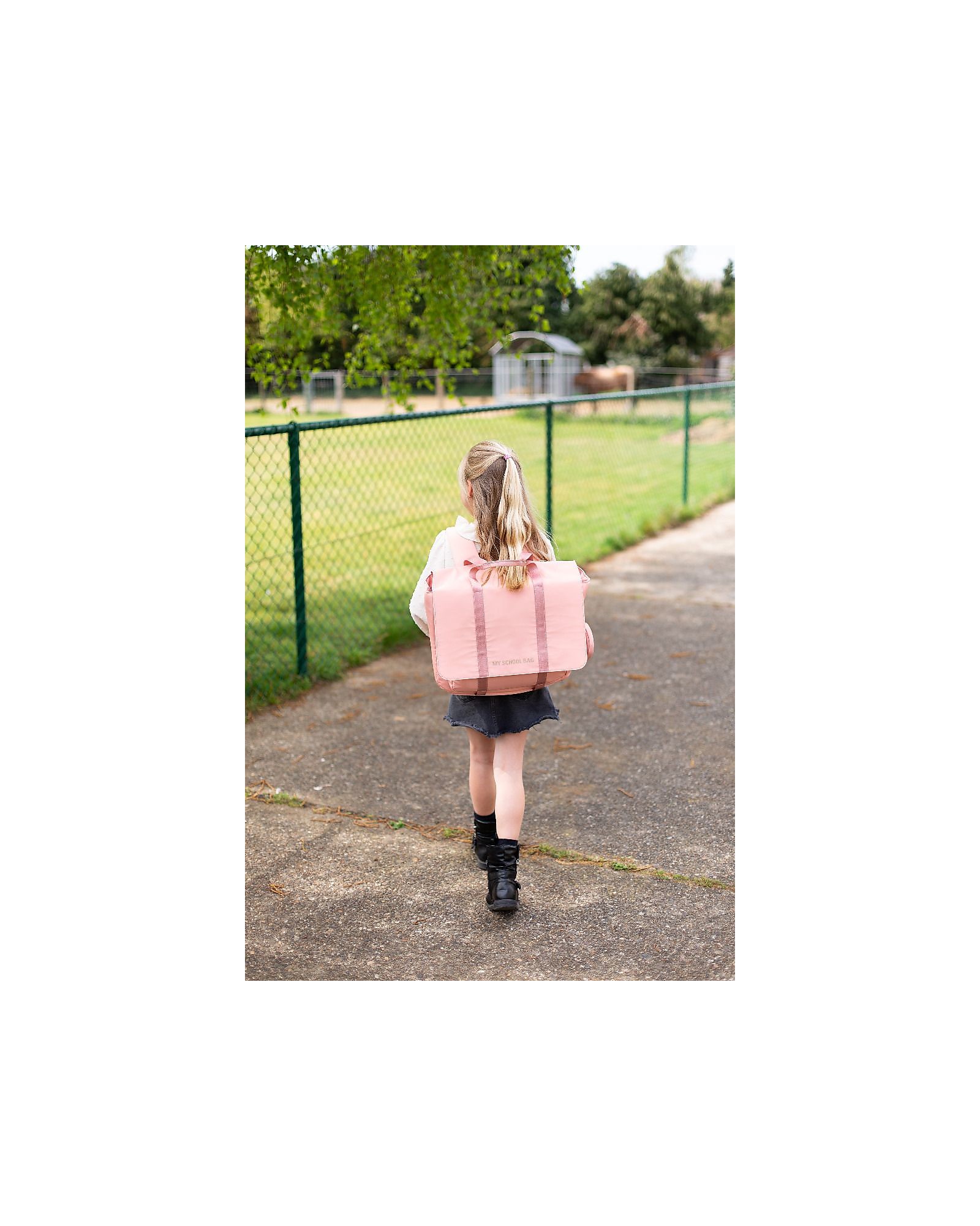 Приятные особенности :Детский портфельChildhome MY SCHOOL BAG идеально подходит для детей от 6 до 9 лет, может использоваться с начала начальной школы и состоит из двух отделений, позволяющих аккуратно хранить все. Мягкая сетчатая спинка и лямки обеспечивают циркуляцию воздуха при контакте с телом. Кроме того, лямки регулируются и имеют эргономичную S-образную форму, в верхней части сумки есть ручка, в нижней части - небольшие металлические заклепки, чтобы ткань не касалась земли напрямую.Сумка оснащена флуоресцентным светоотражающим чехлом от дождя, который сохраняет все находящиеся внутри сухими, а также делает ребенка заметным в пробке.