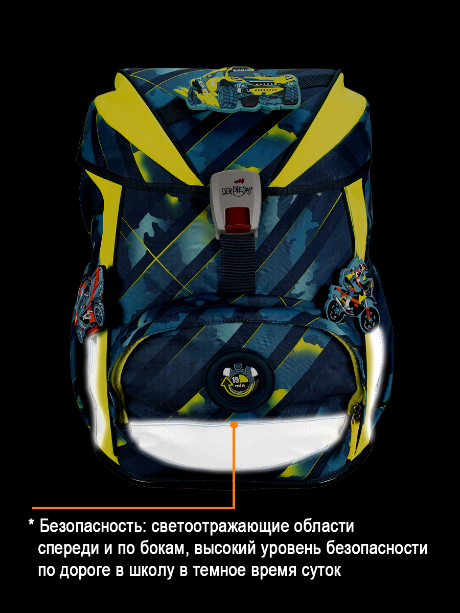 Школьный ранец DerDieDas ErgoFlex Buttons Испытание скоростью купить в интернет - магазине детских товаров Babysecret с бесплатной доставкой по Москве и быстрой по России, цена, отзывы, фото, обзоры