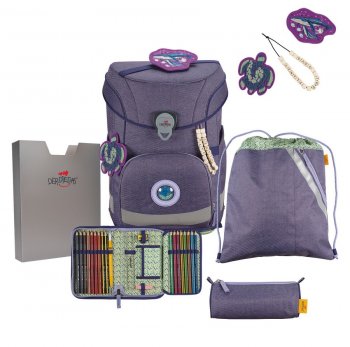 В комплекте:РюкзакМешок для обувиПенал с наполнениемМягкий пеналАксессуары: 2 сменных значка и 1 подвескаПапка-бокс