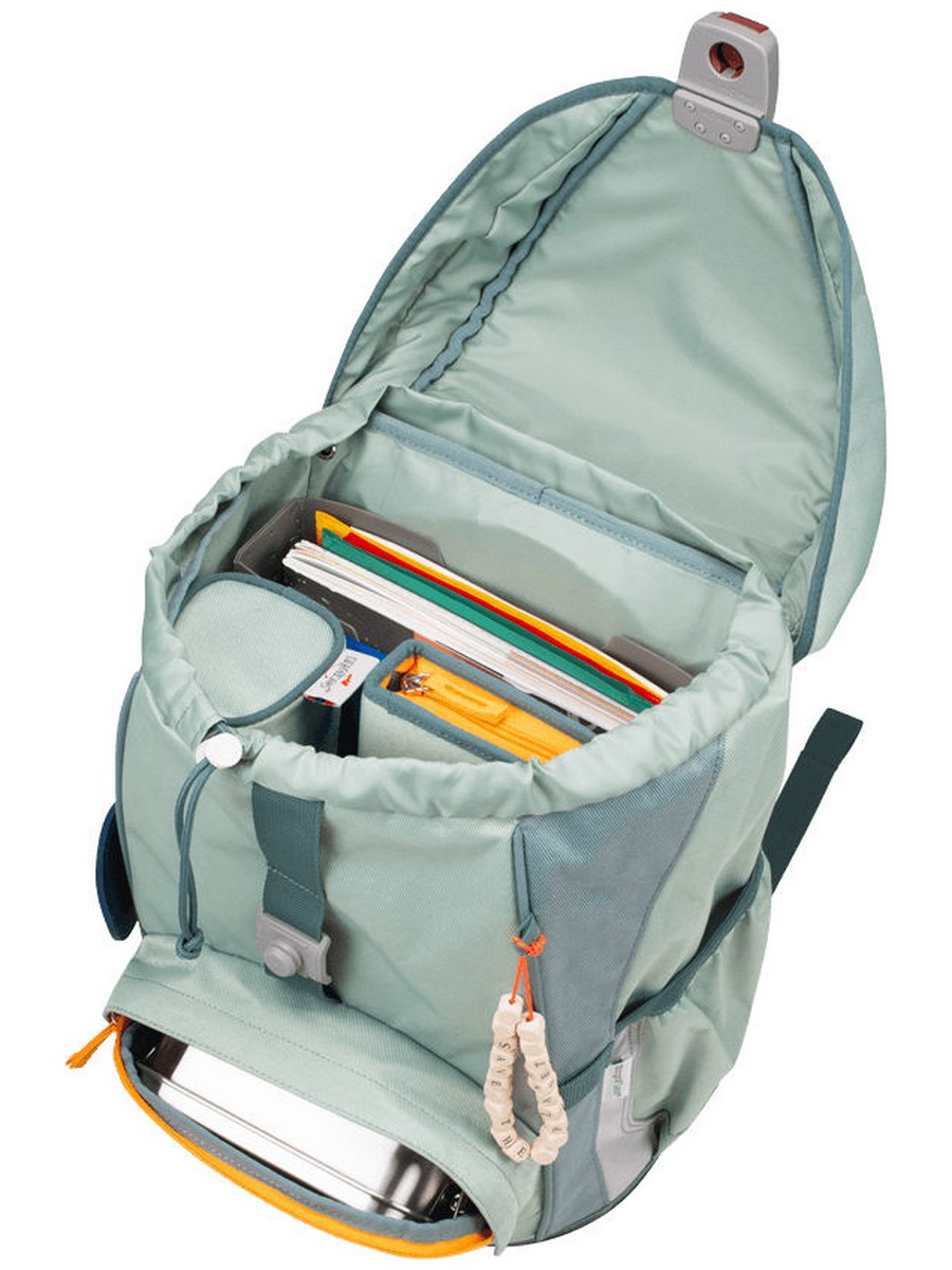 • Нагрудный ремень обеспечивает плотное прилегание ранца к спине. Съемный набедренный ремень переносит вес на бедра, уменьшая нагрузку на позвоночник.